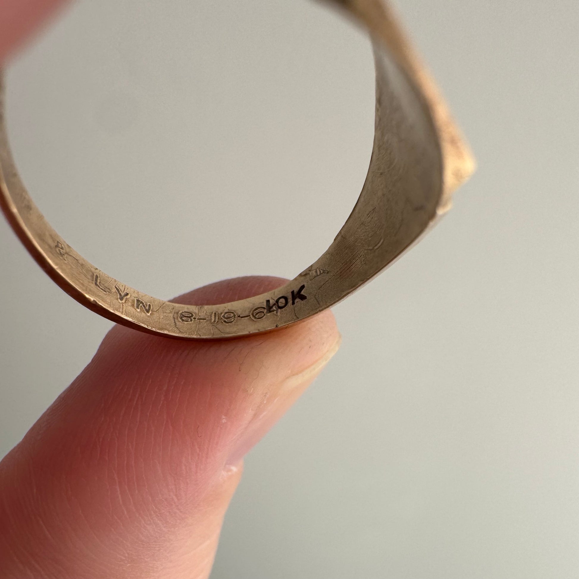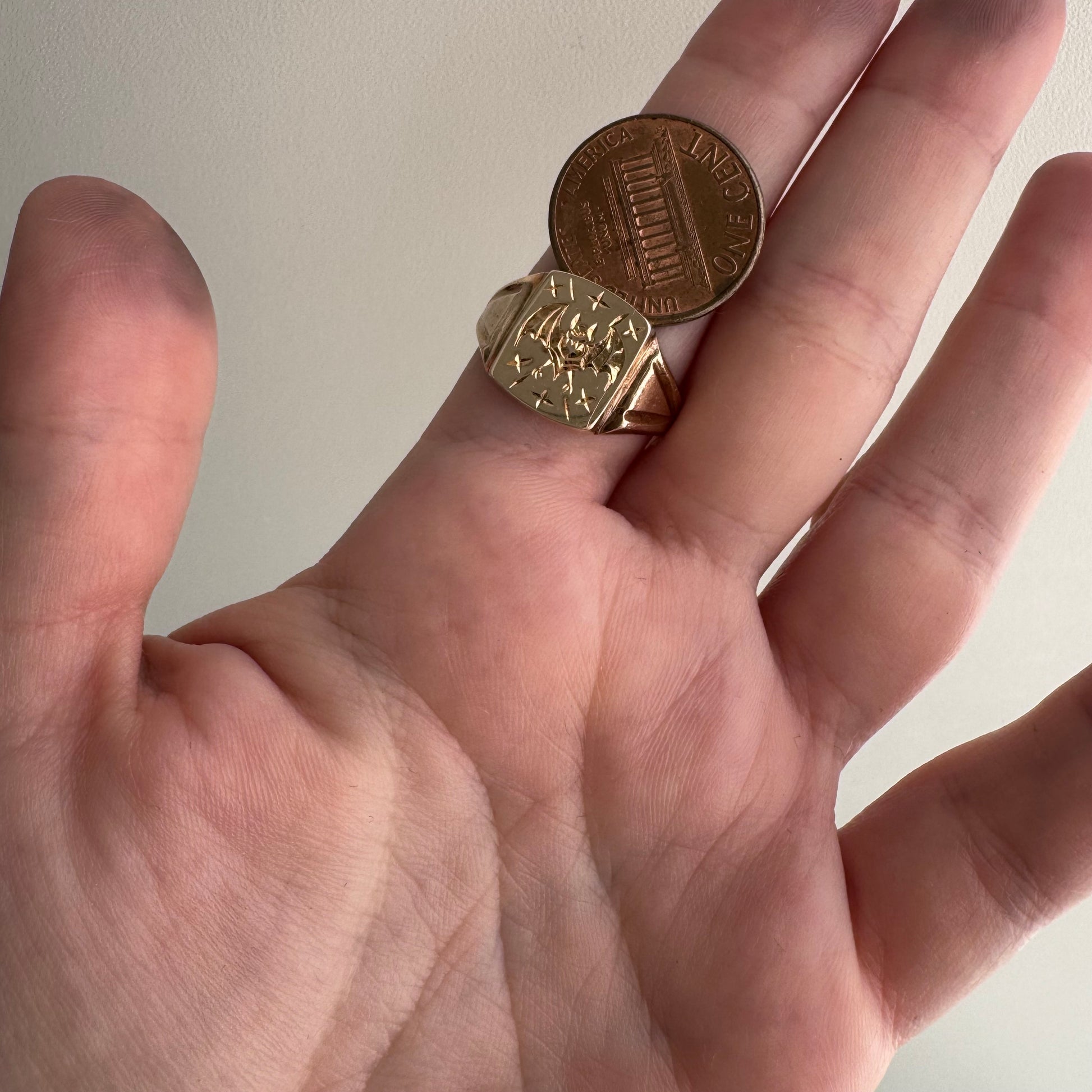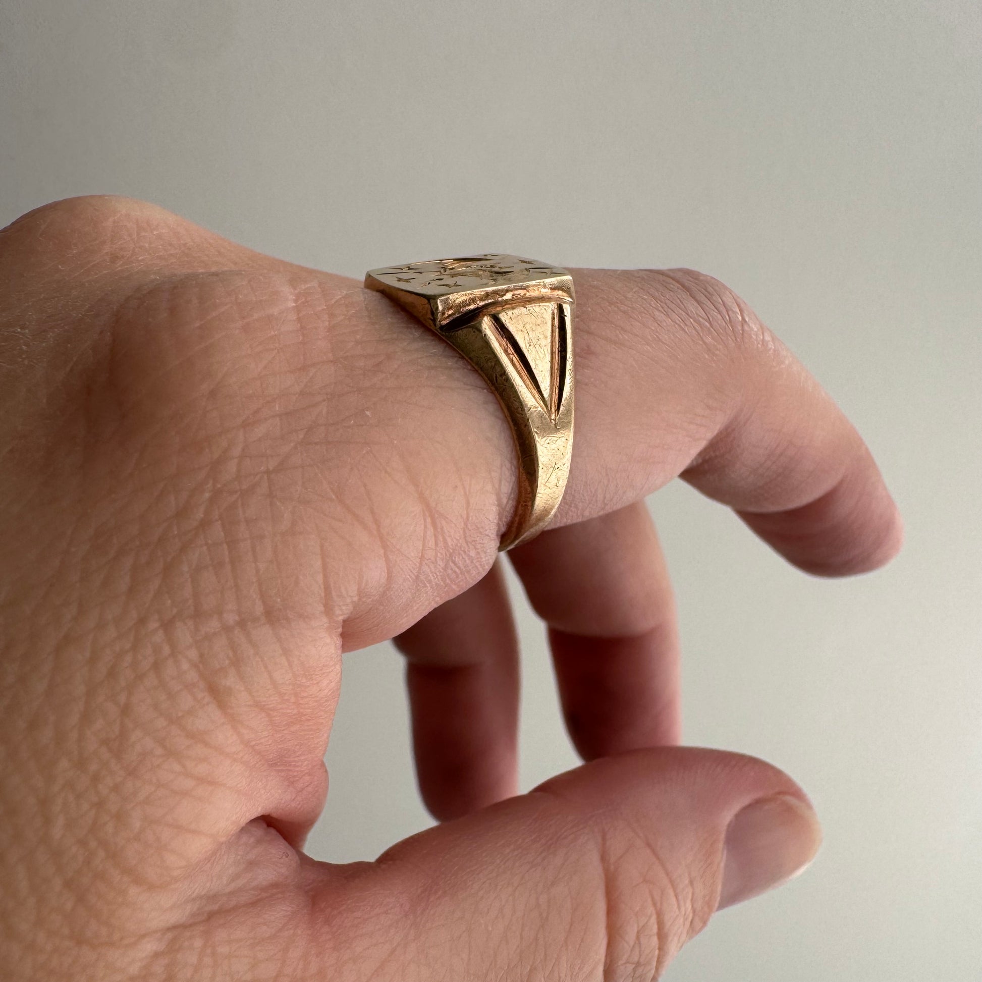 reimagined V I N T A G E // intuitive guide / 10k rosy yellow signet with a newly engraved bat / size 8.5