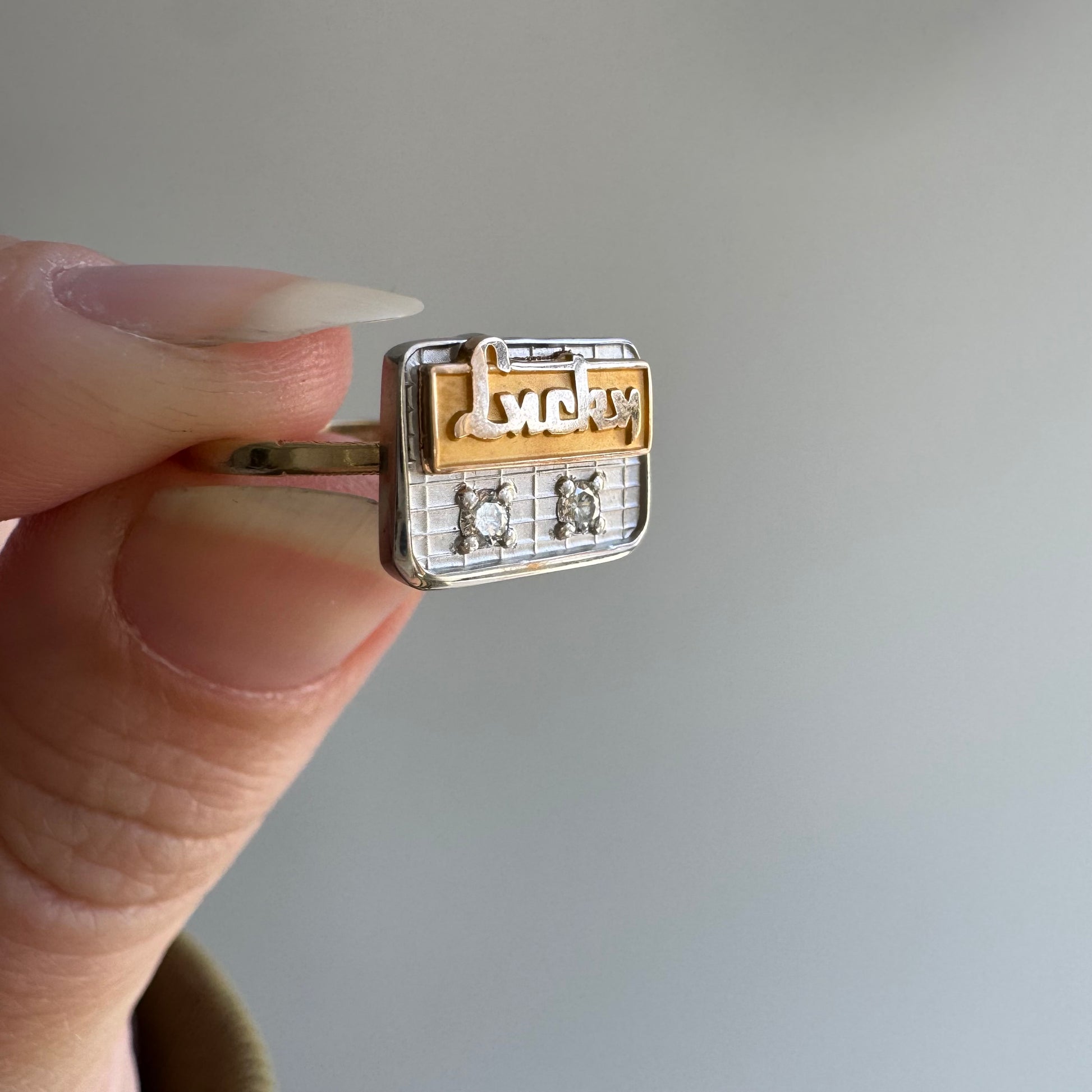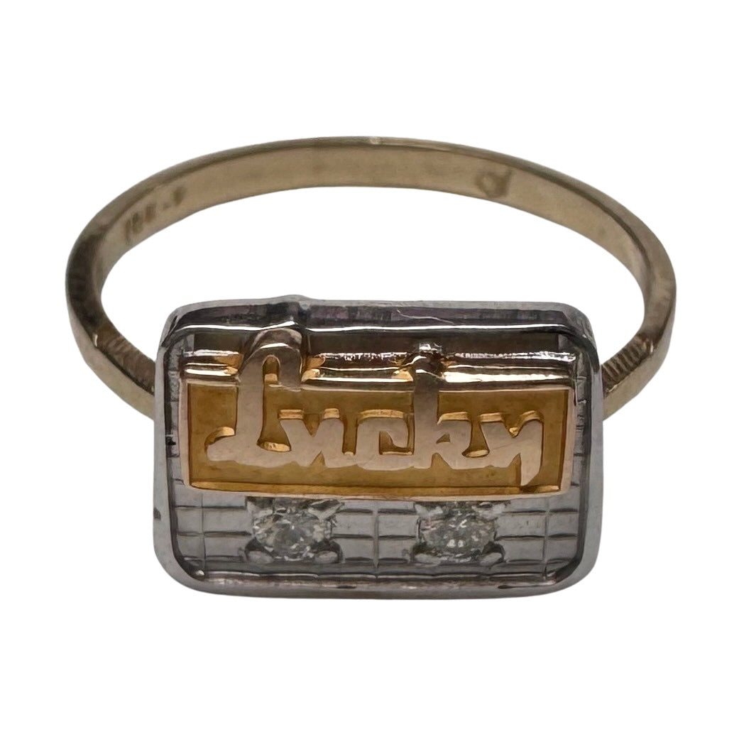 reimagined V I N T A G E // Lucky achievements / 10k and diamond Lucky supermaket pin conversion ring / size 5.75