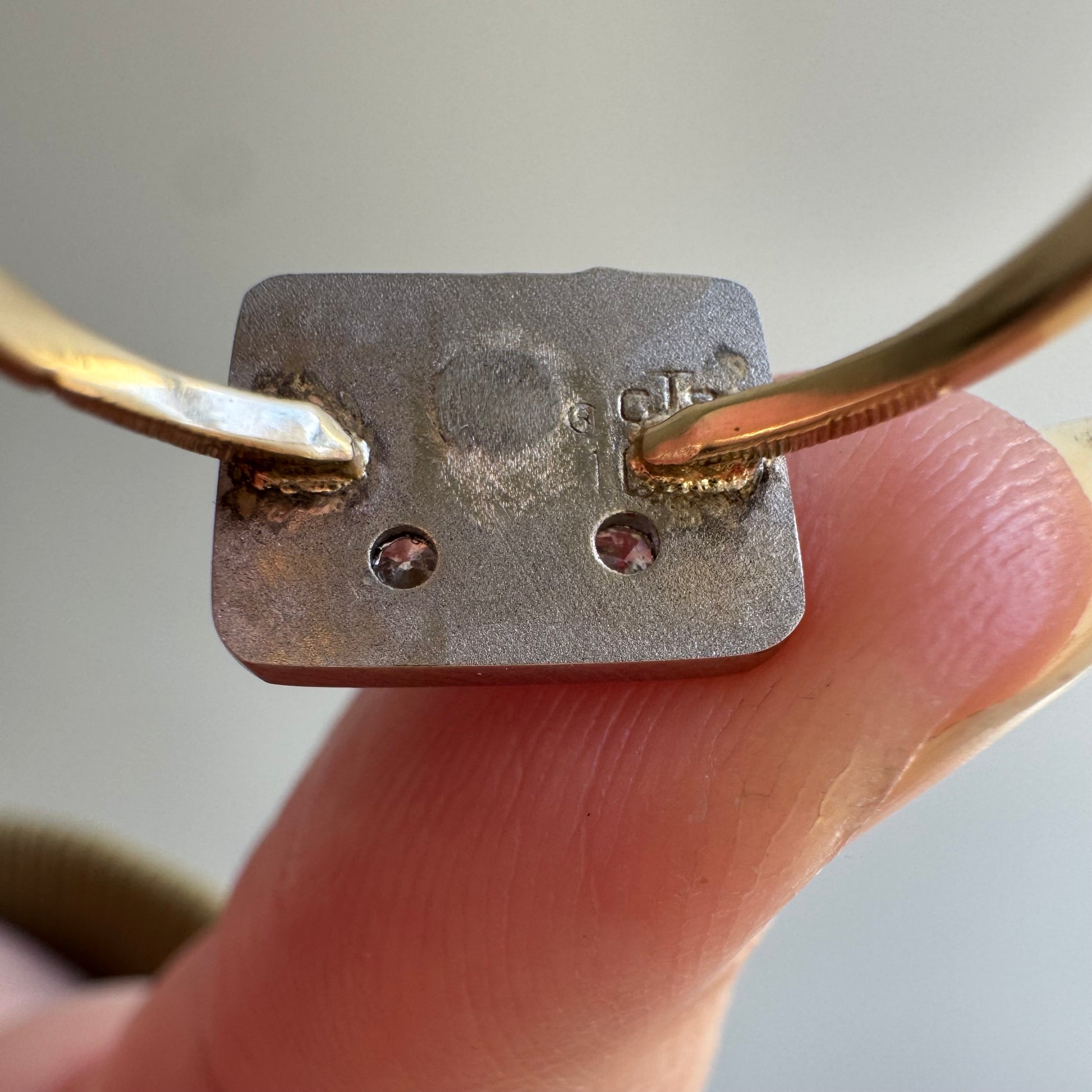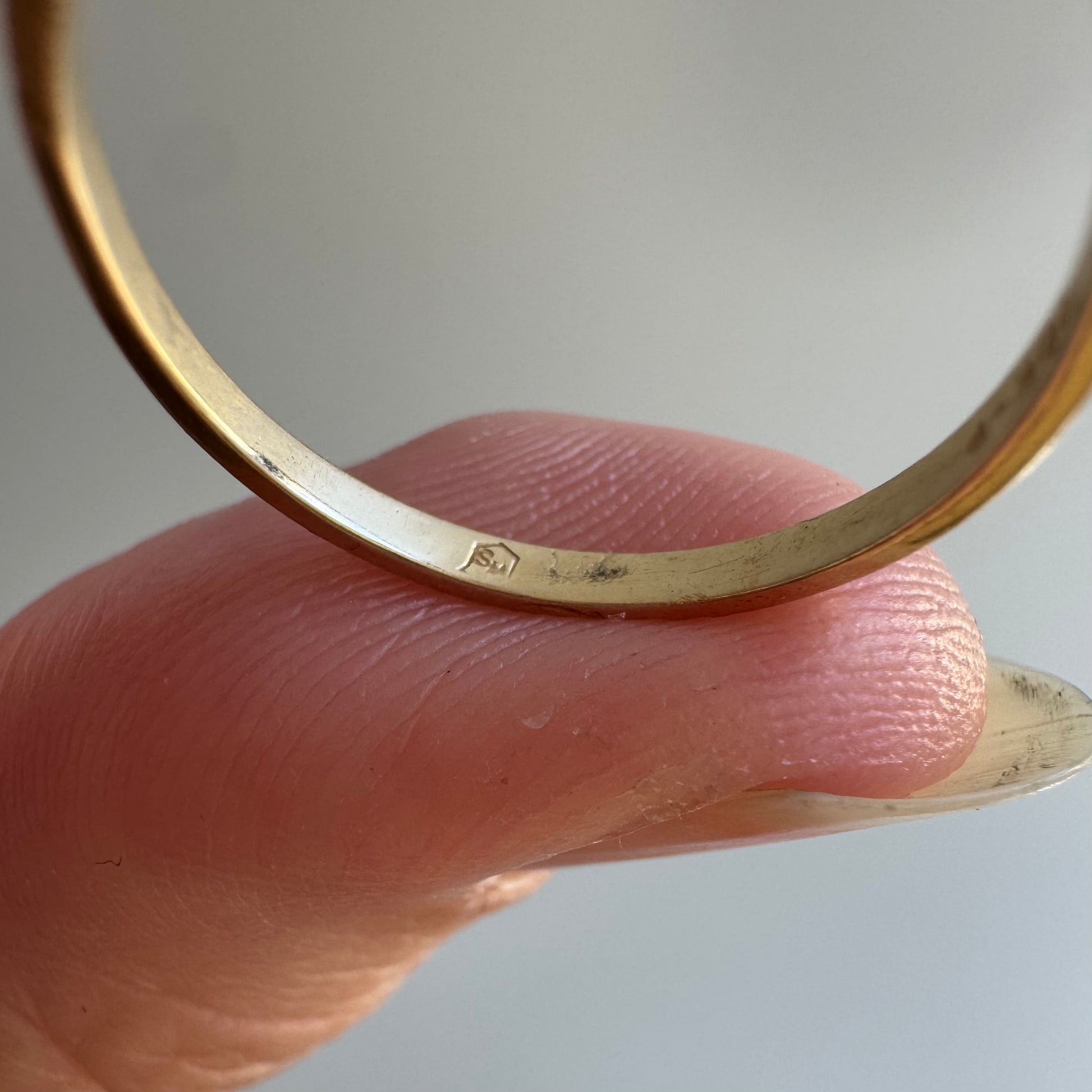 -the band was originally a solitaire ring and the sides of the pipe cut shoulders have a late mid century brushed/florentine finish