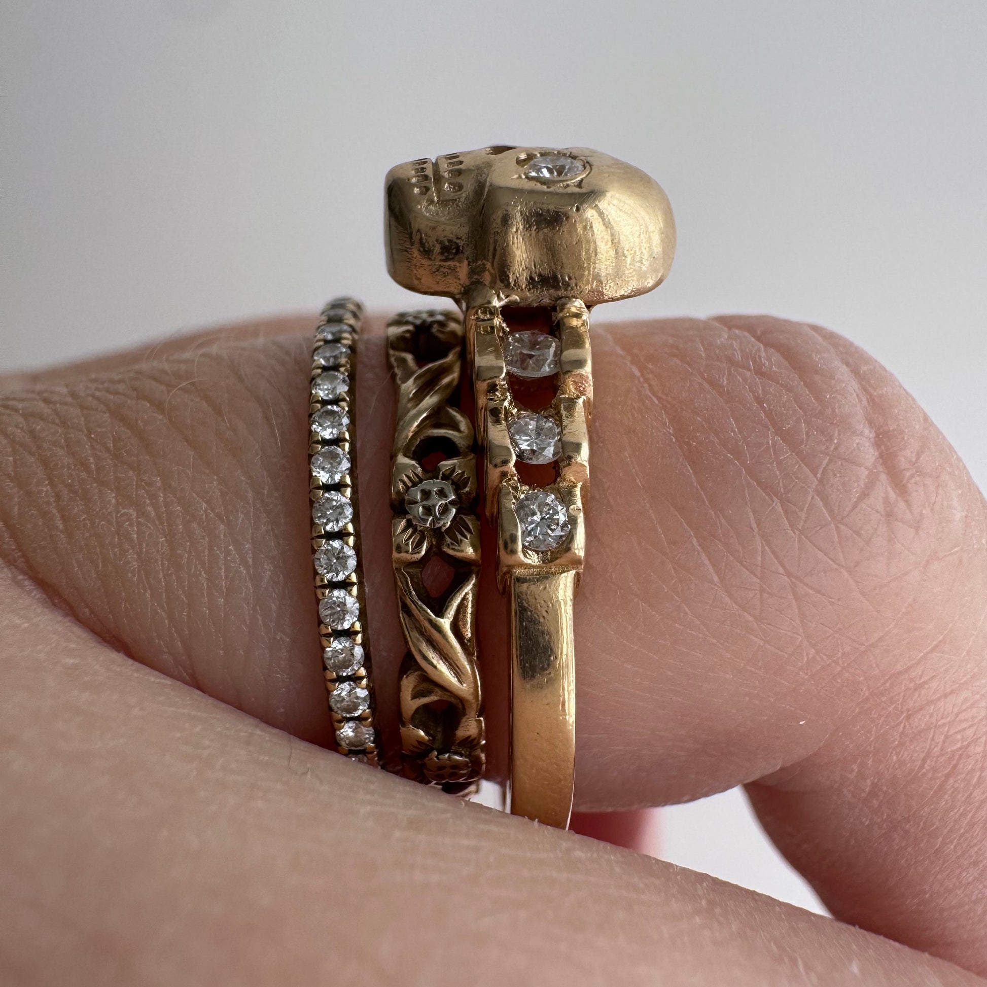 reimagined V I N T A G E // memento mori / 14k and diamond ring skull stacking ring / size 8