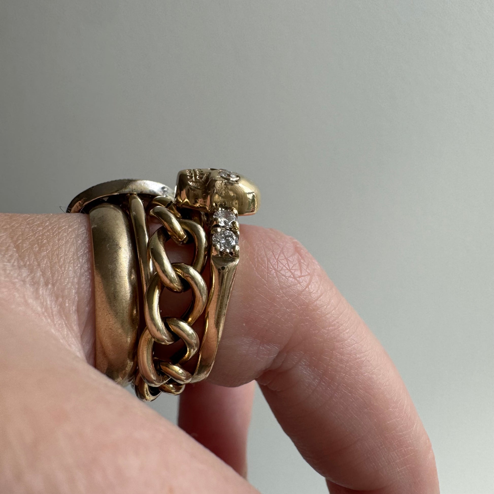 reimagined V I N T A G E // memento mori / 14k and diamond skull stacking ring / size 6.75