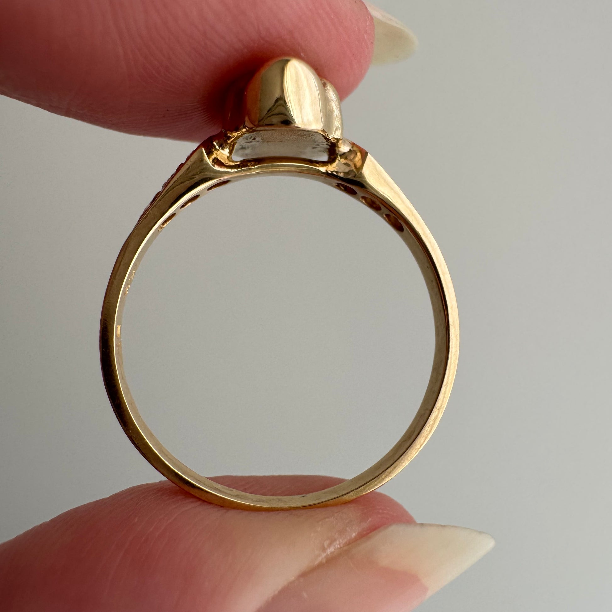 reimagined V I N T A G E // memento mori / 14k and pave diamond arrow motif skull stacking ring / size 7