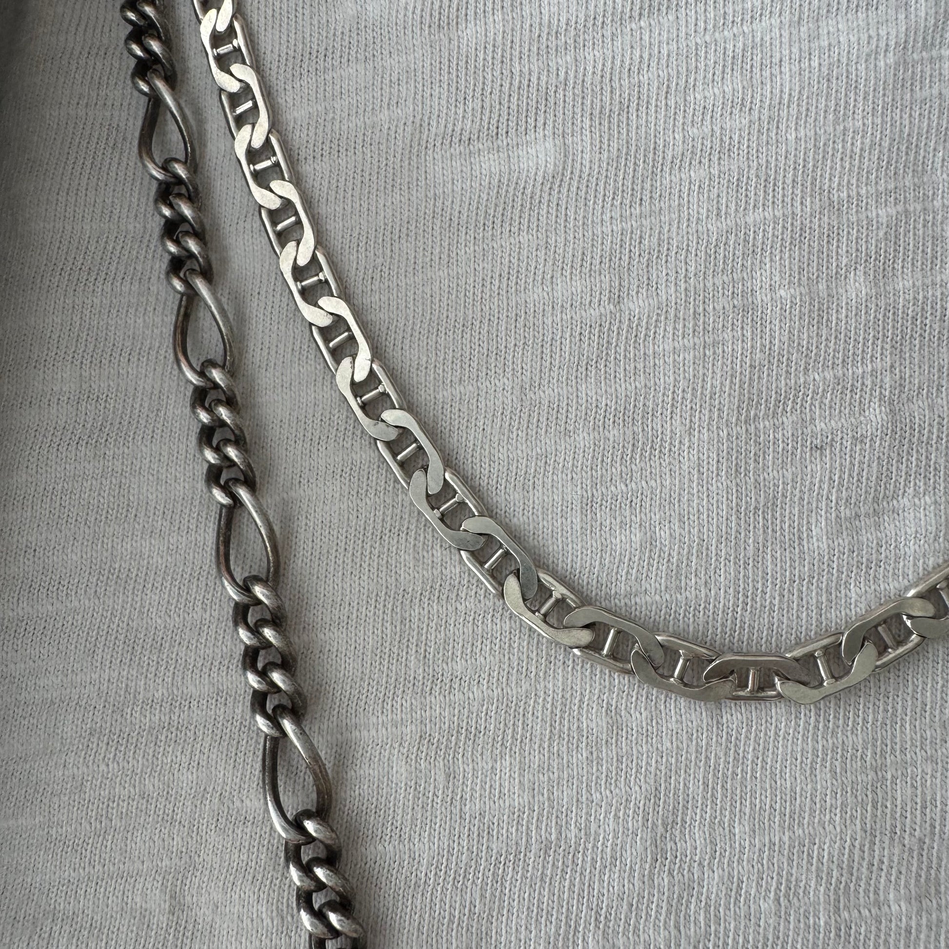 -the chain is from the 1940s and was sourced in 80+ years of patina and grime, it has been cleaned and cleaned and lightly hand polished, leaving a modest amount of patina throughout the links — further polishing decisions are left to the next caretaker