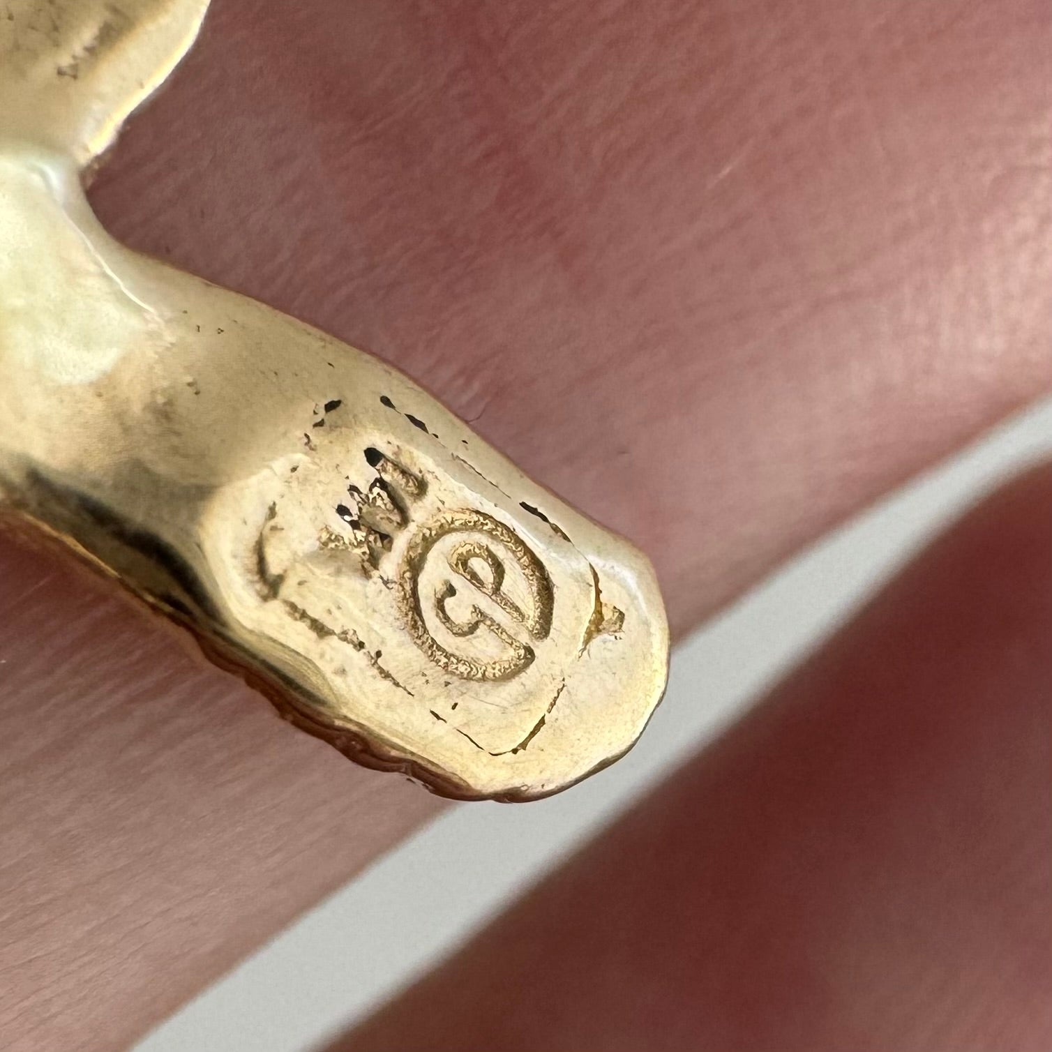 -minor inconsistencies in hue on the back of the pendant where the original pin hardware was removed