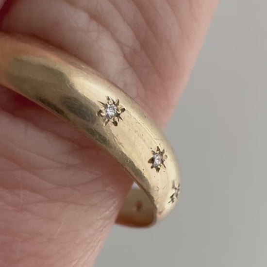 reimagined V I N T A G E // star story / 10k 4mm subtle D-shaped band with seven new star-set diamonds / size 9.5-9.75