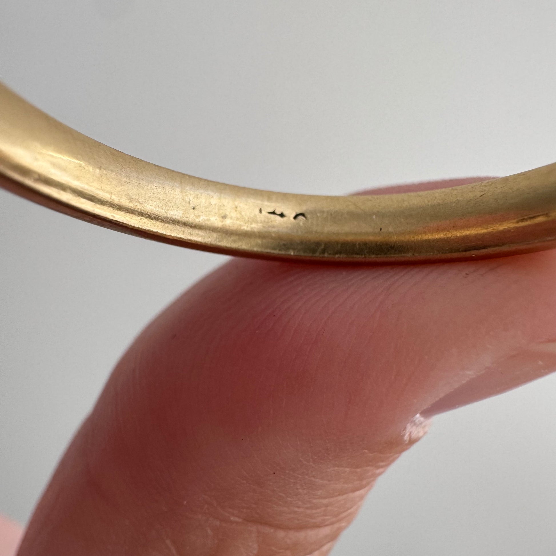 this particular band is a plump, donut-y, comfort-fit band in a coveted larger size. the band is circa ~1960s and is a rich, buttery hue of solid 14k yellow gold. the diamonds are new round brilliant cuts. the star set diamonds are done by hand, so you'll notice they aren't perfectly equidistant or level, and each one has its own little quirks in its eight point setting. it's a wearable prayer about our connection with each other, the universe, and the magic that is in the now, which is possible only because of what has come before and what is yet to unfold
