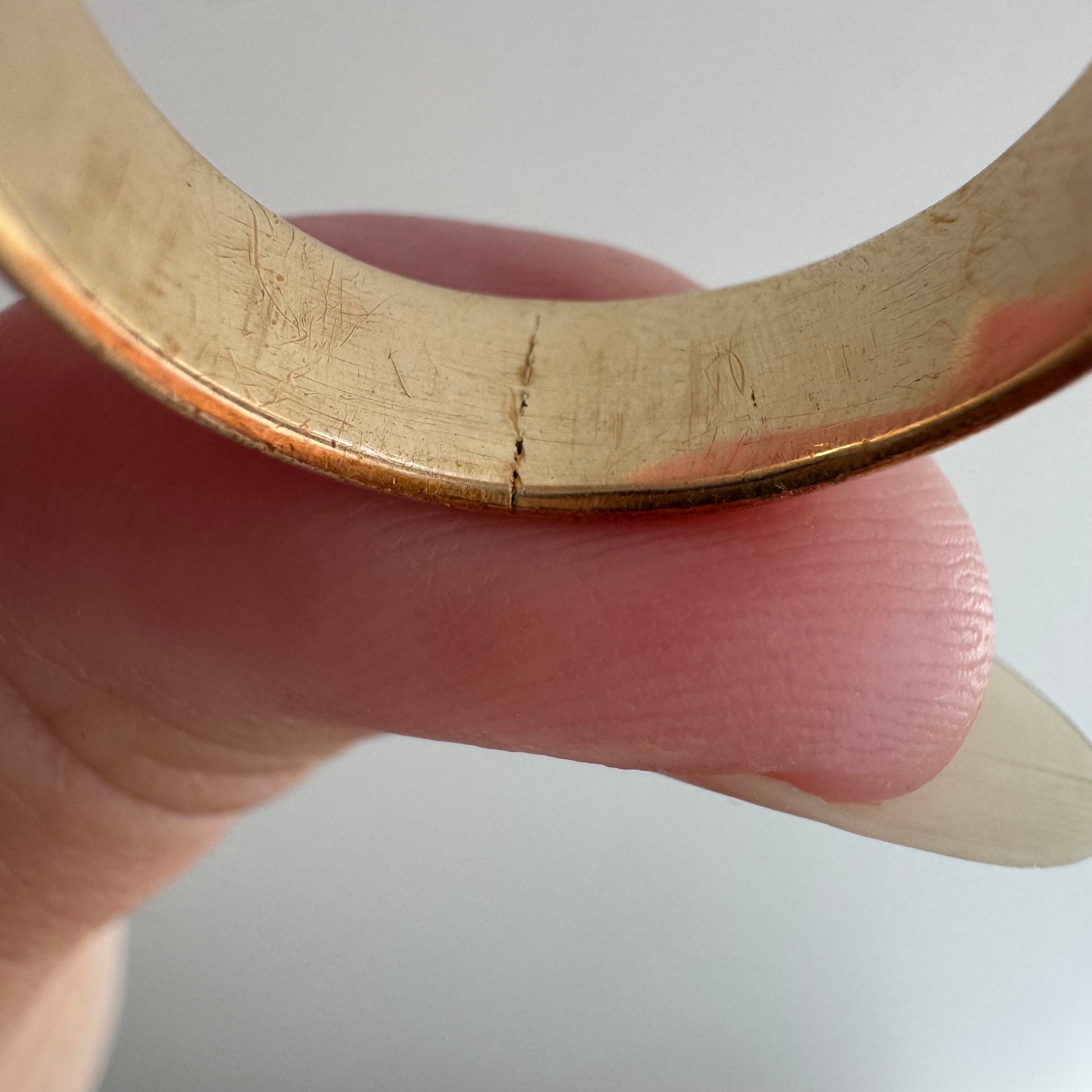 despite its surface wear, the vintage wide almost-donut-y band is mirror-like and picks up every reflection possible in photos. thanks for seeing past the reflections.