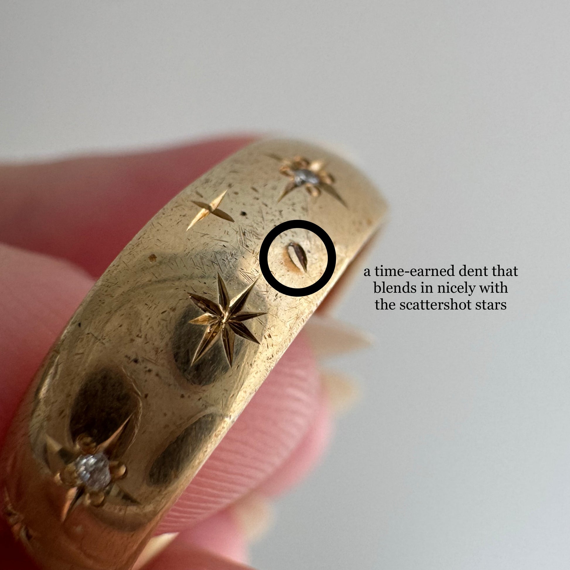 reimagined V I N T A G E // the best witch / 14k and diamond starburst eternity band with a witch flying on a broom / size 8ish
