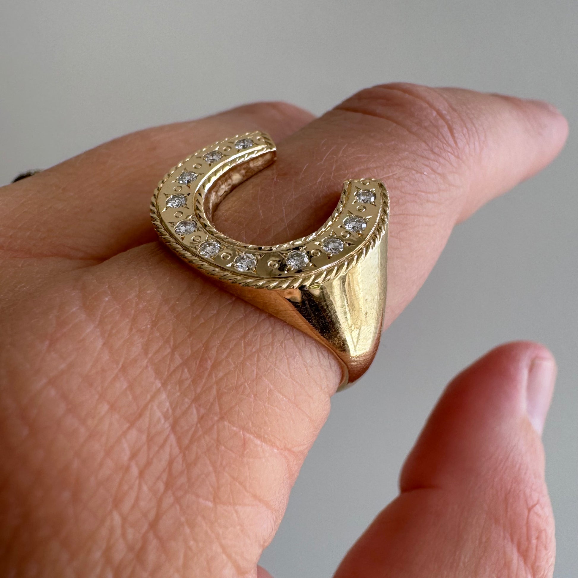 reimagined V I N T A G E // timeless horseshoe / 14k and diamond horseshoe signet ring / size 8.5
