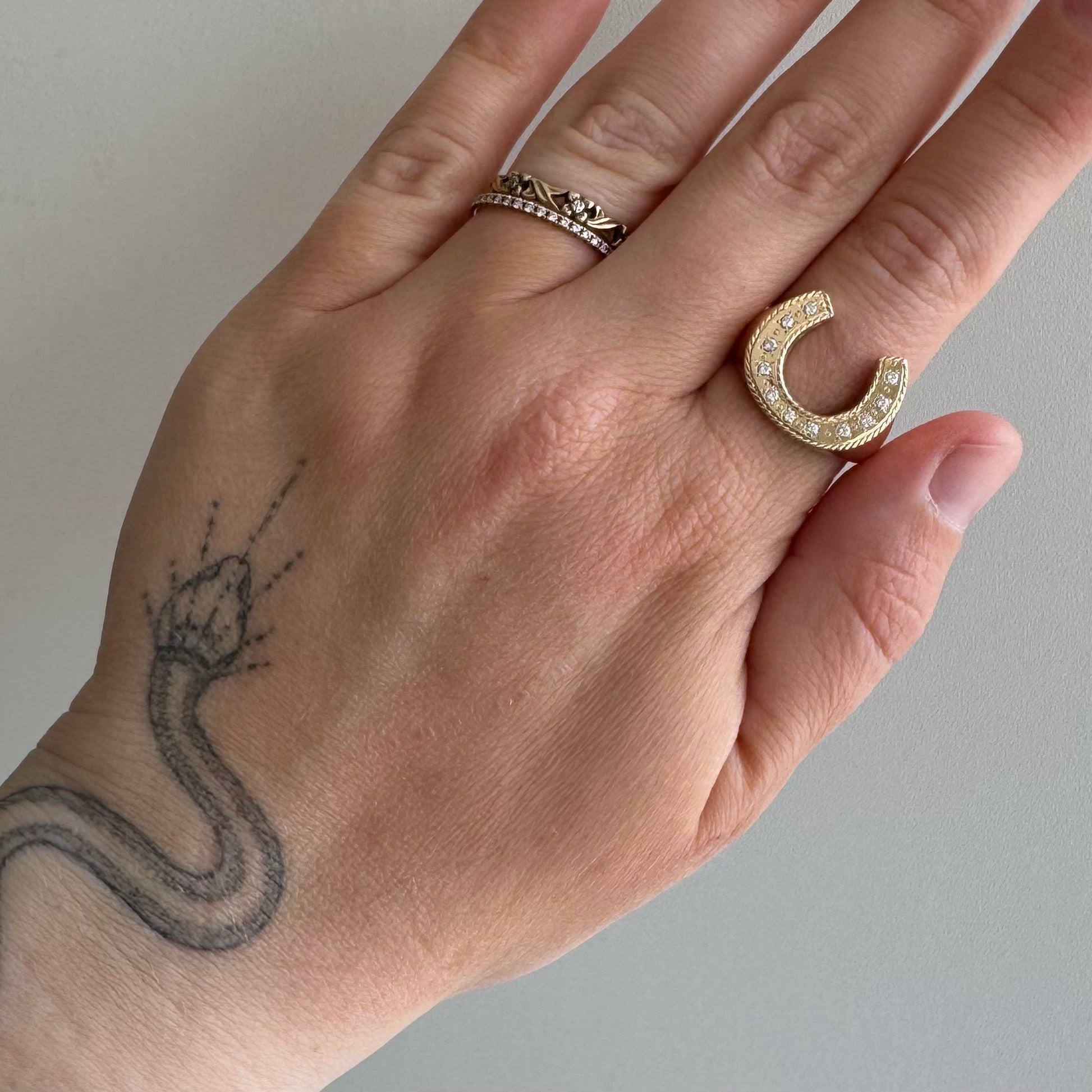 it's classic and sassy all at once, which is a delightful combination and departure from the seriousness of many horseshoe rings