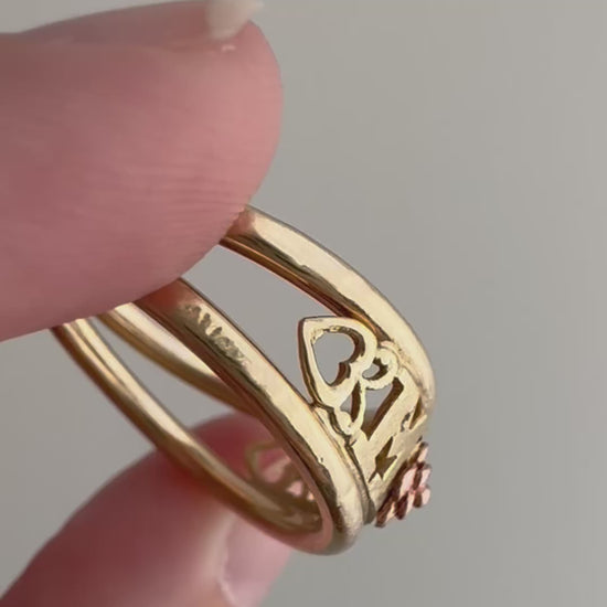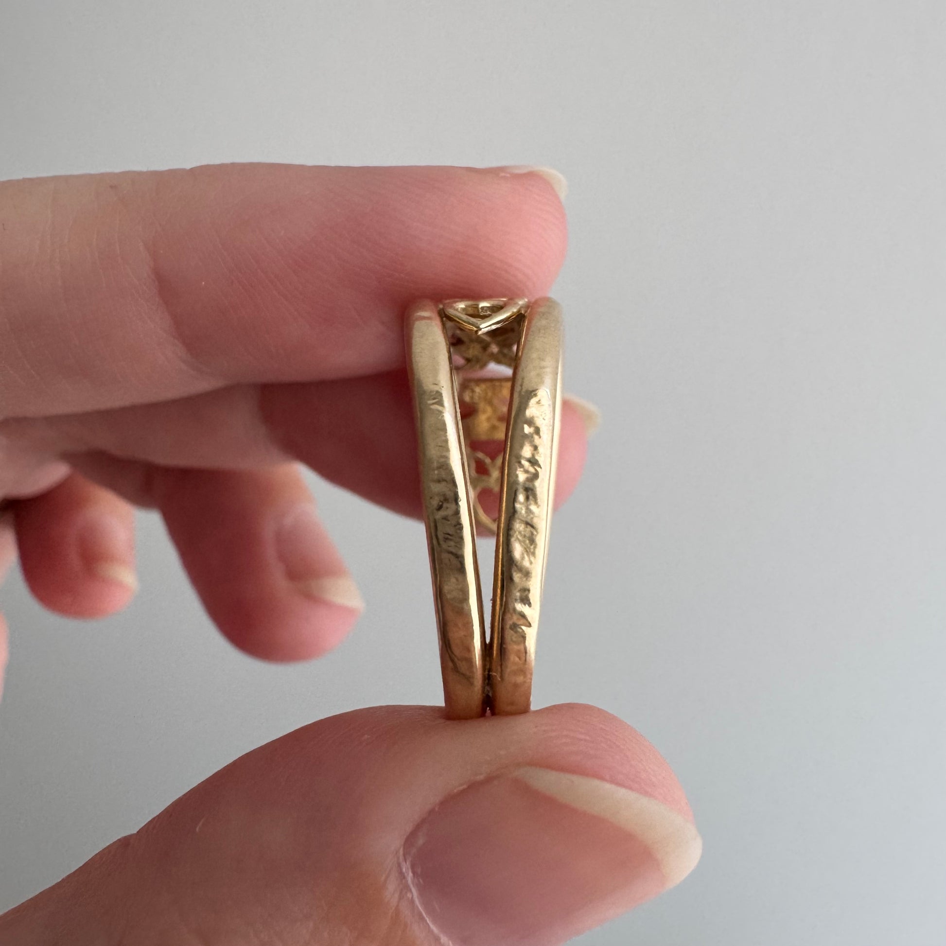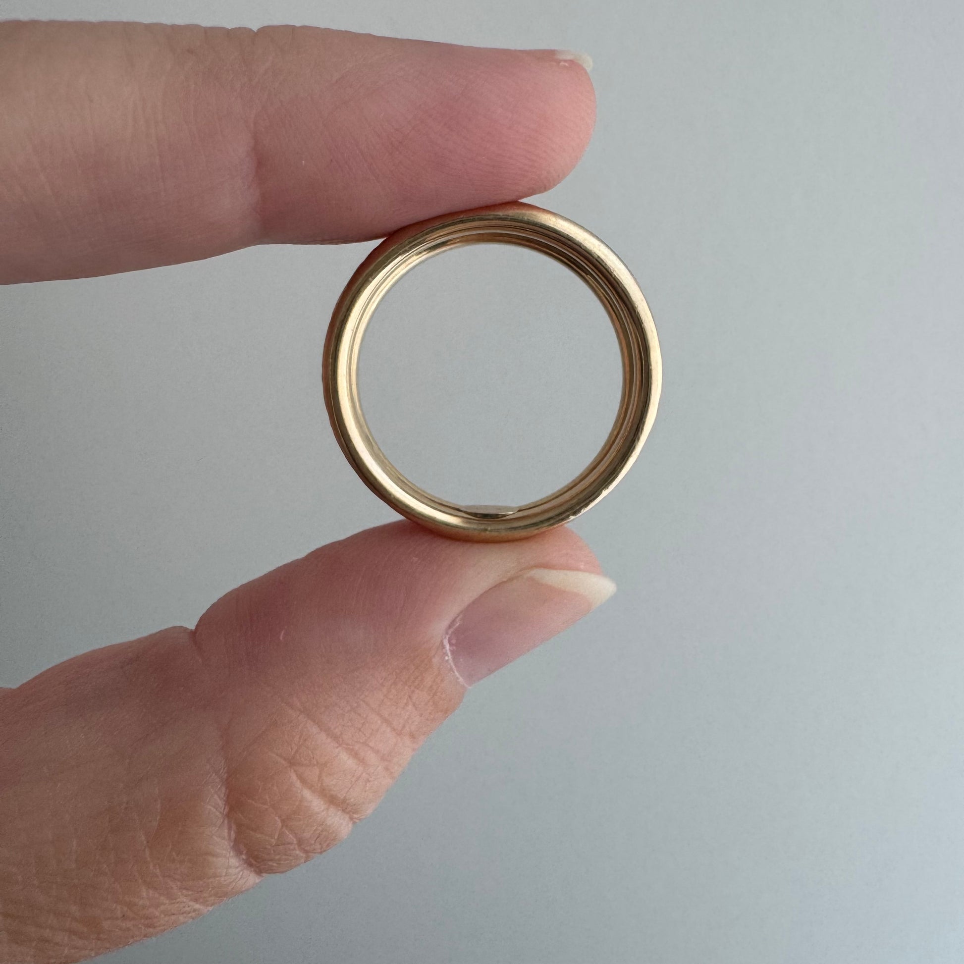 S E C O N D S A L E // 10k bicolor MOM WOW tapered wide band / size 8