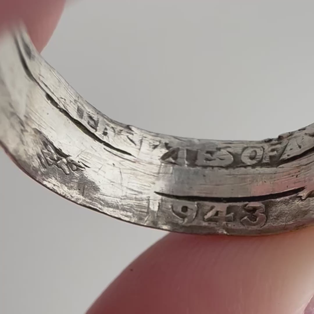 [short term listing] V I N T A G E // wide 900 silver 1943 quarter dollar band / size 6.5