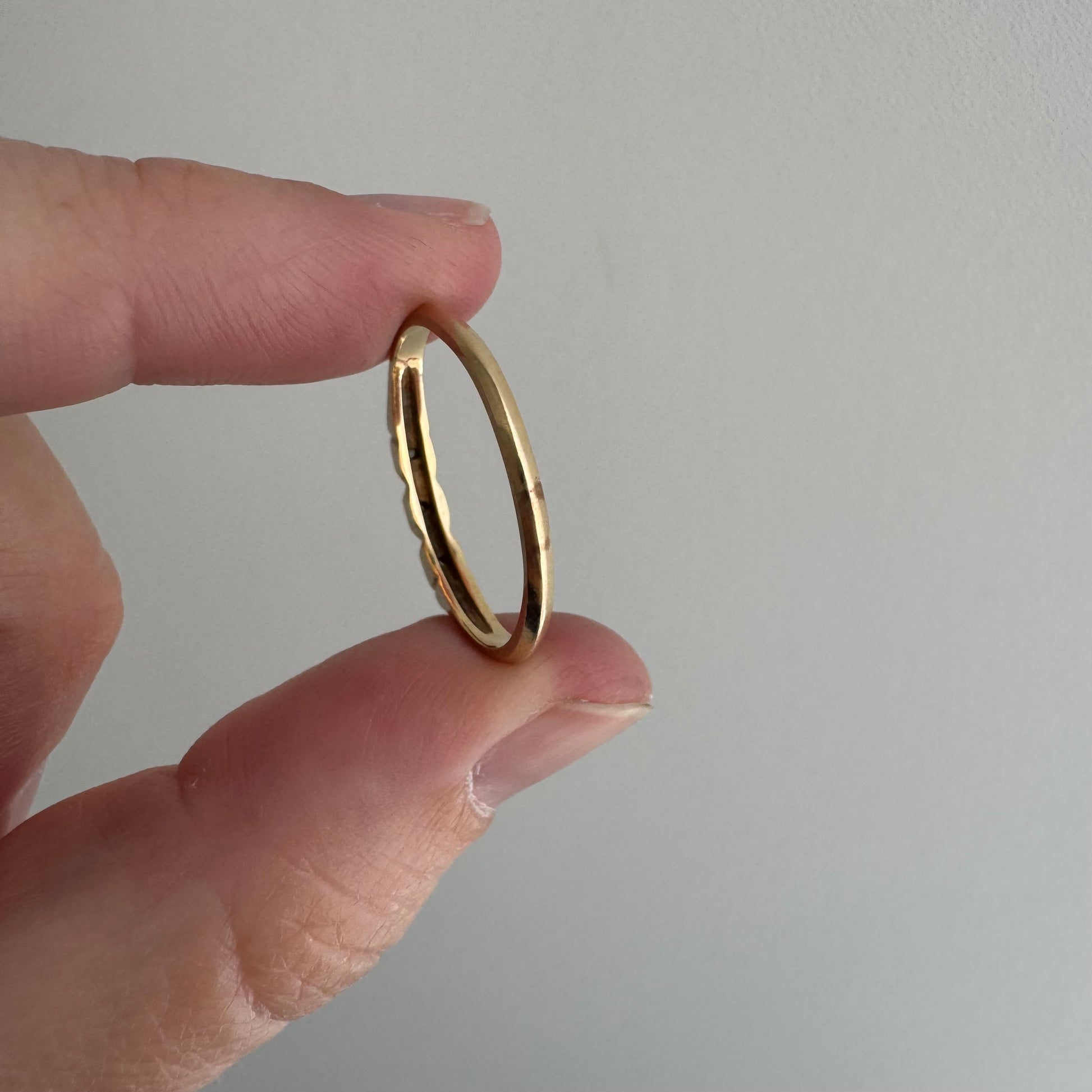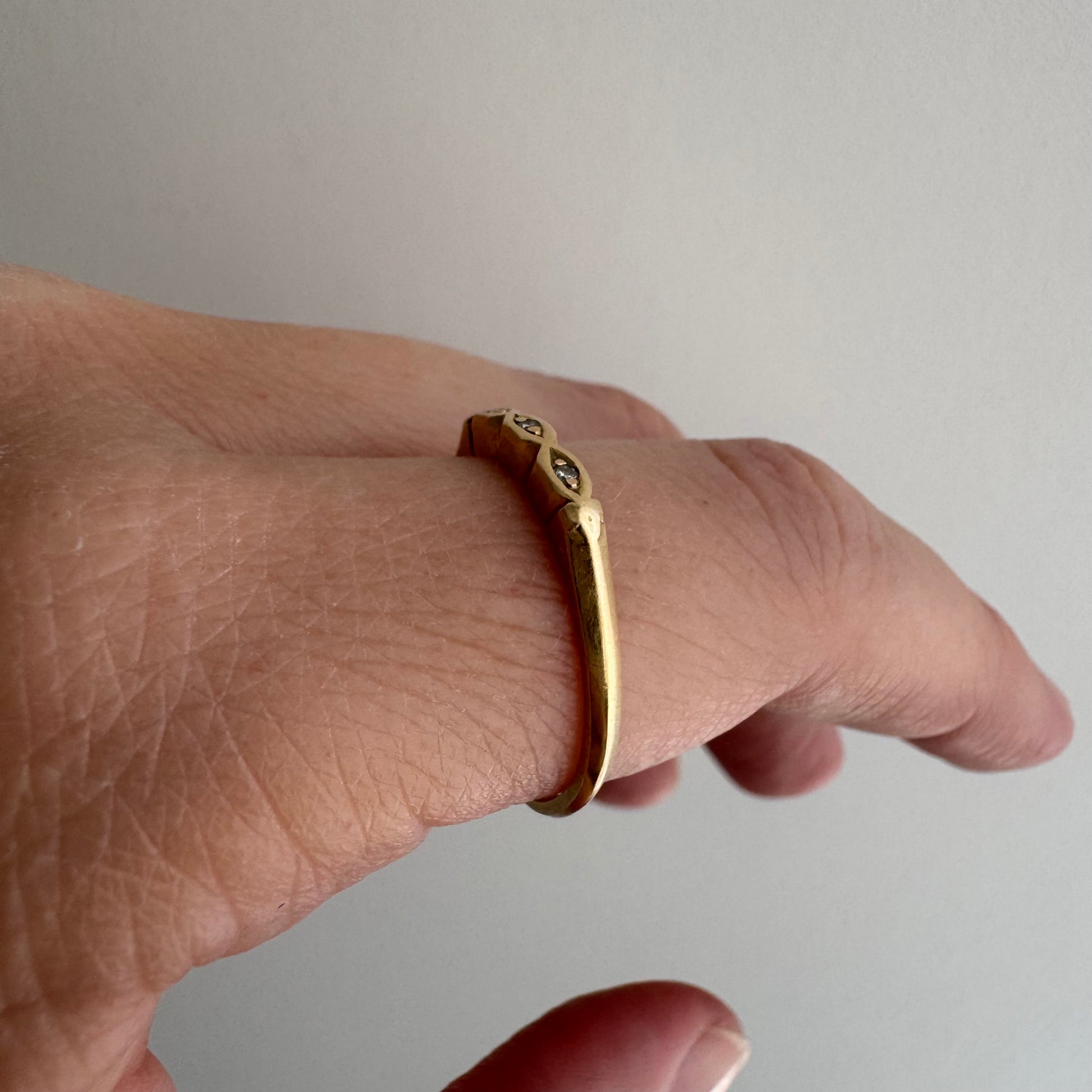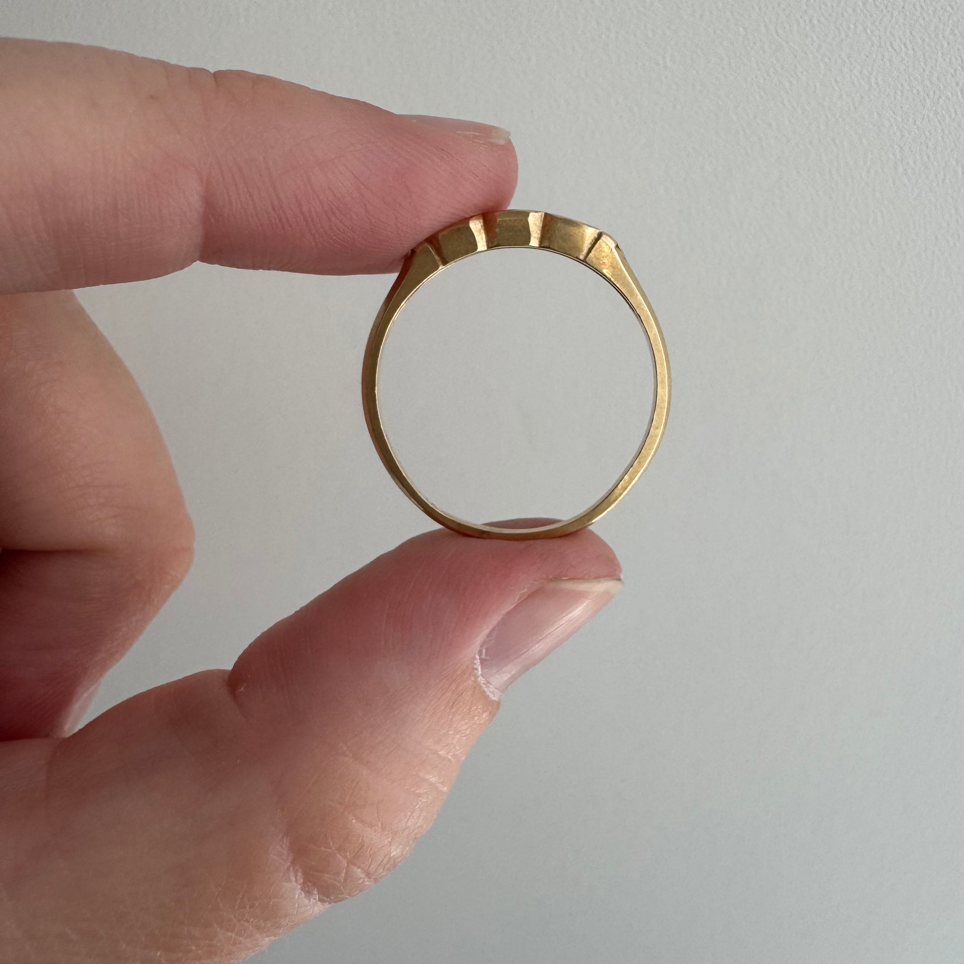 -band is slightly oval from a previous sizing up to its current size and there's darker patina near the sizing seams — this will easily polish off, but it's nice to see how it oxidizes for transparency