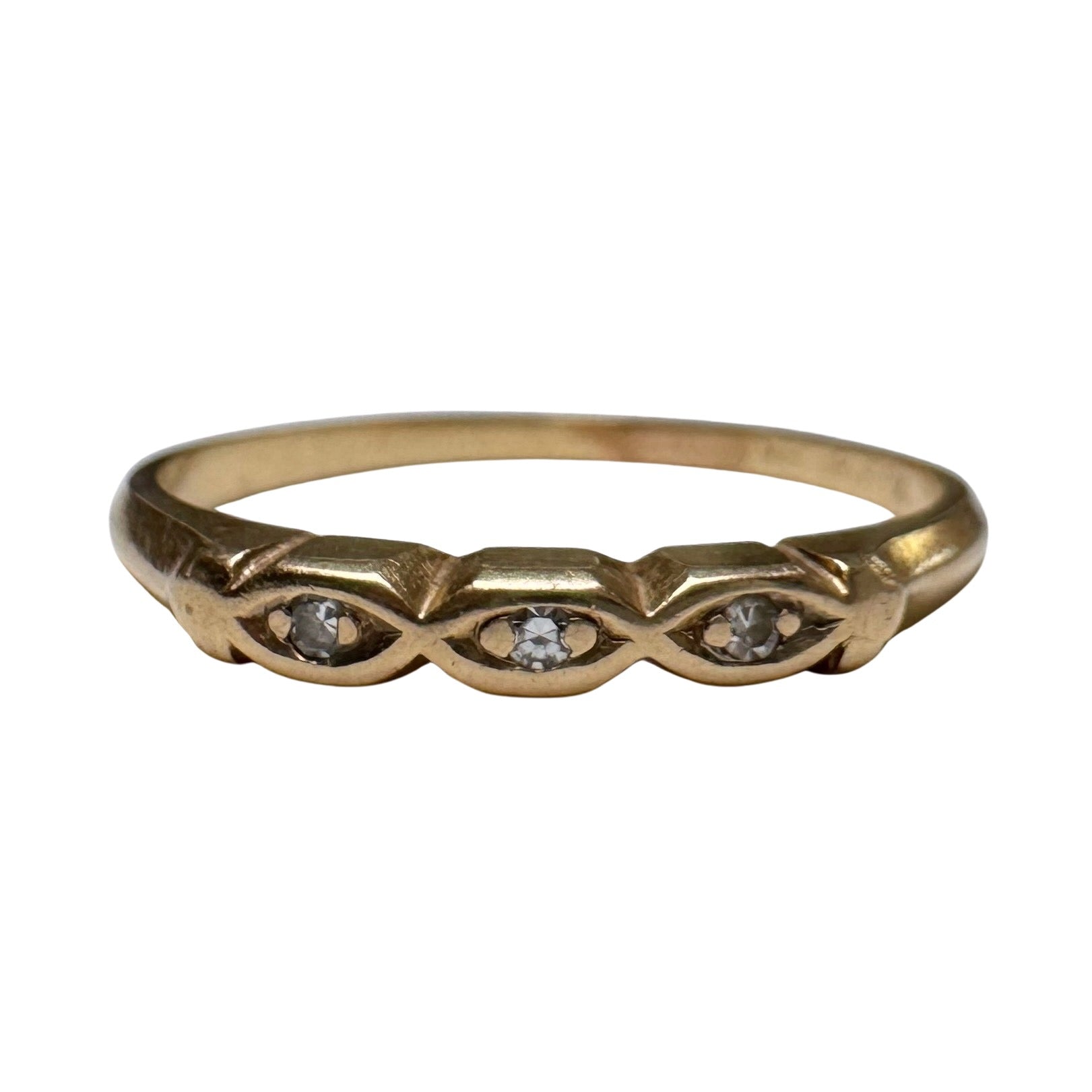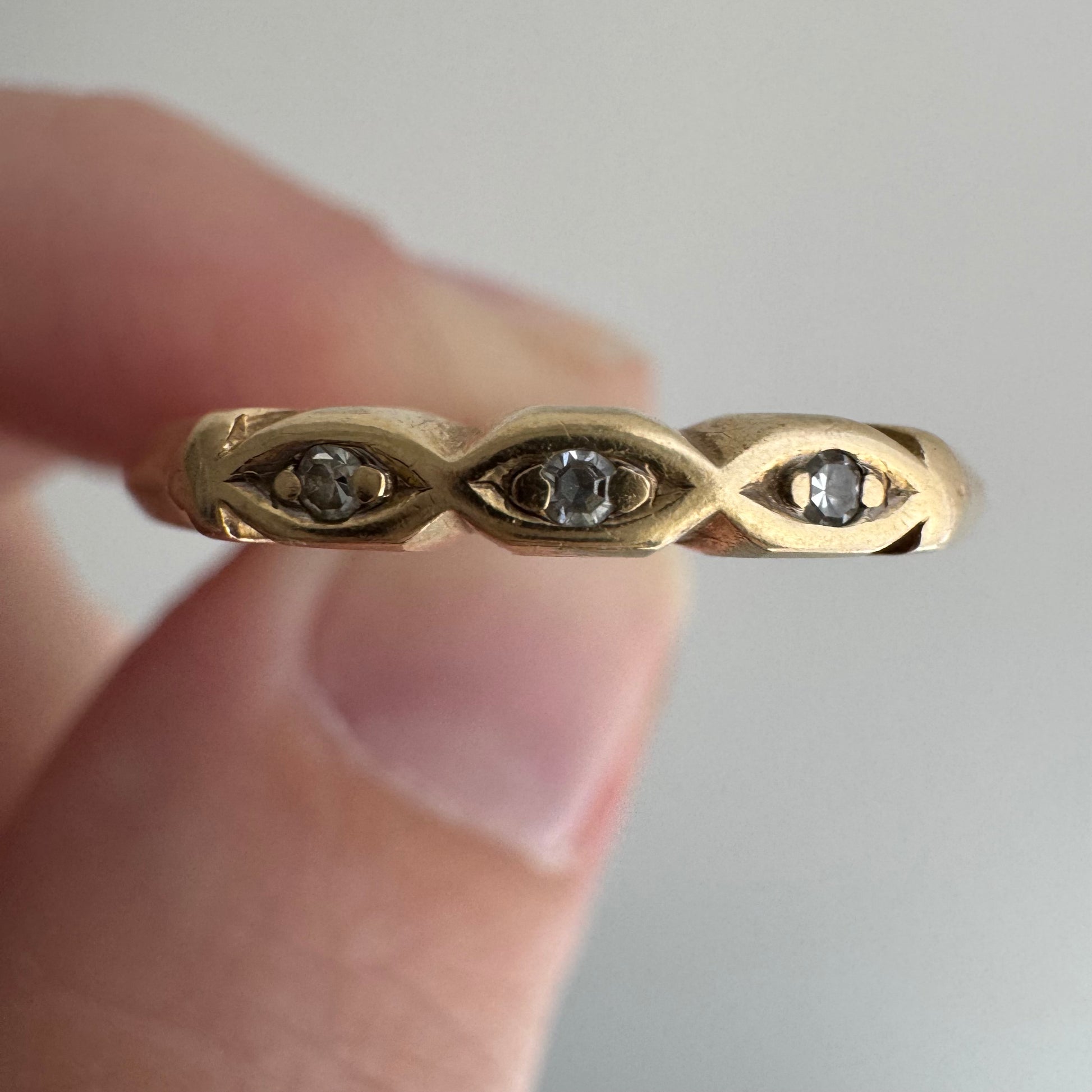 V I N T A G E // and your third eye / 14k and diamond east west navette eye diamond trilogy band / size 9