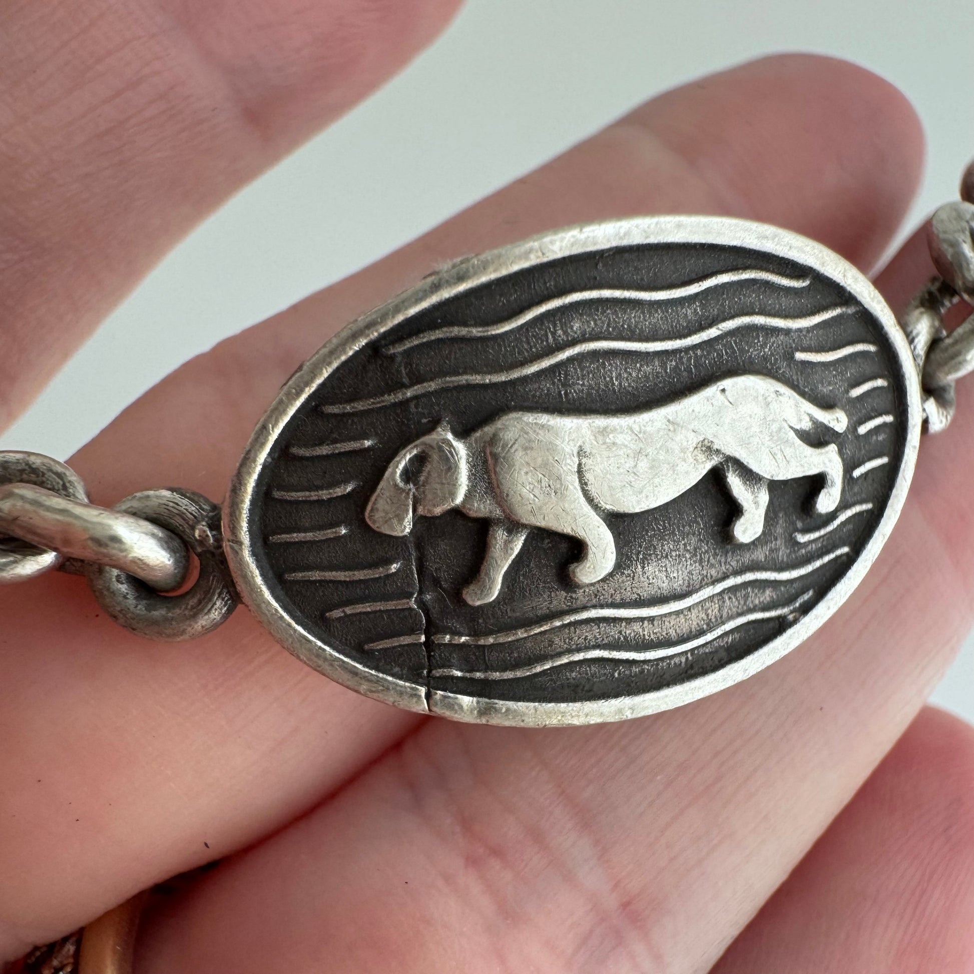 V I N T A G E // big cat links / sterling silver panther oval link bracelet / ~7.5", 30.6g