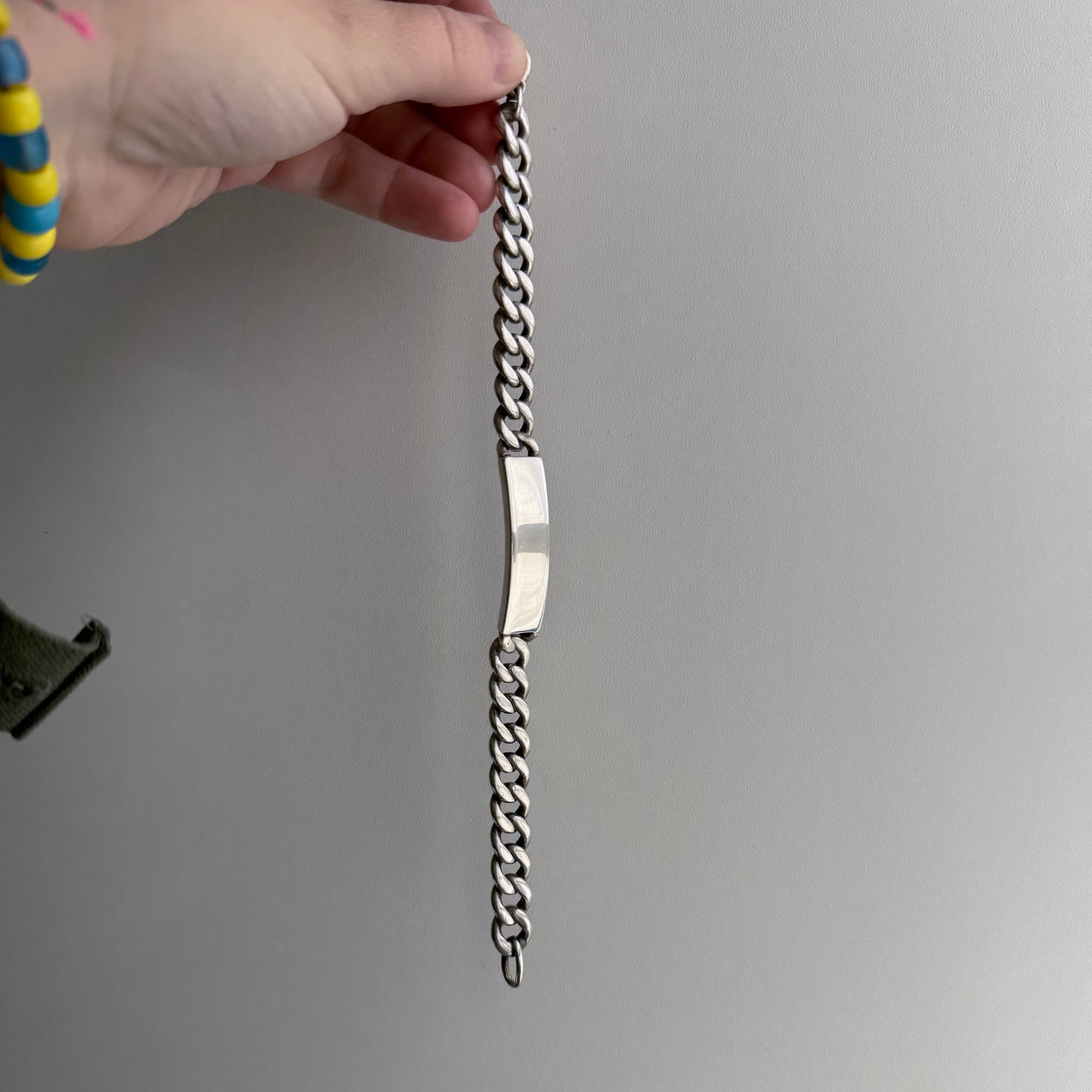 some designs are truly timeless and this is one of them. a sturdy, classic, sterling silver ID bracelet with curved, rectangular panel and timeless curb chain finished with a sister clasp in true 1940s fashion