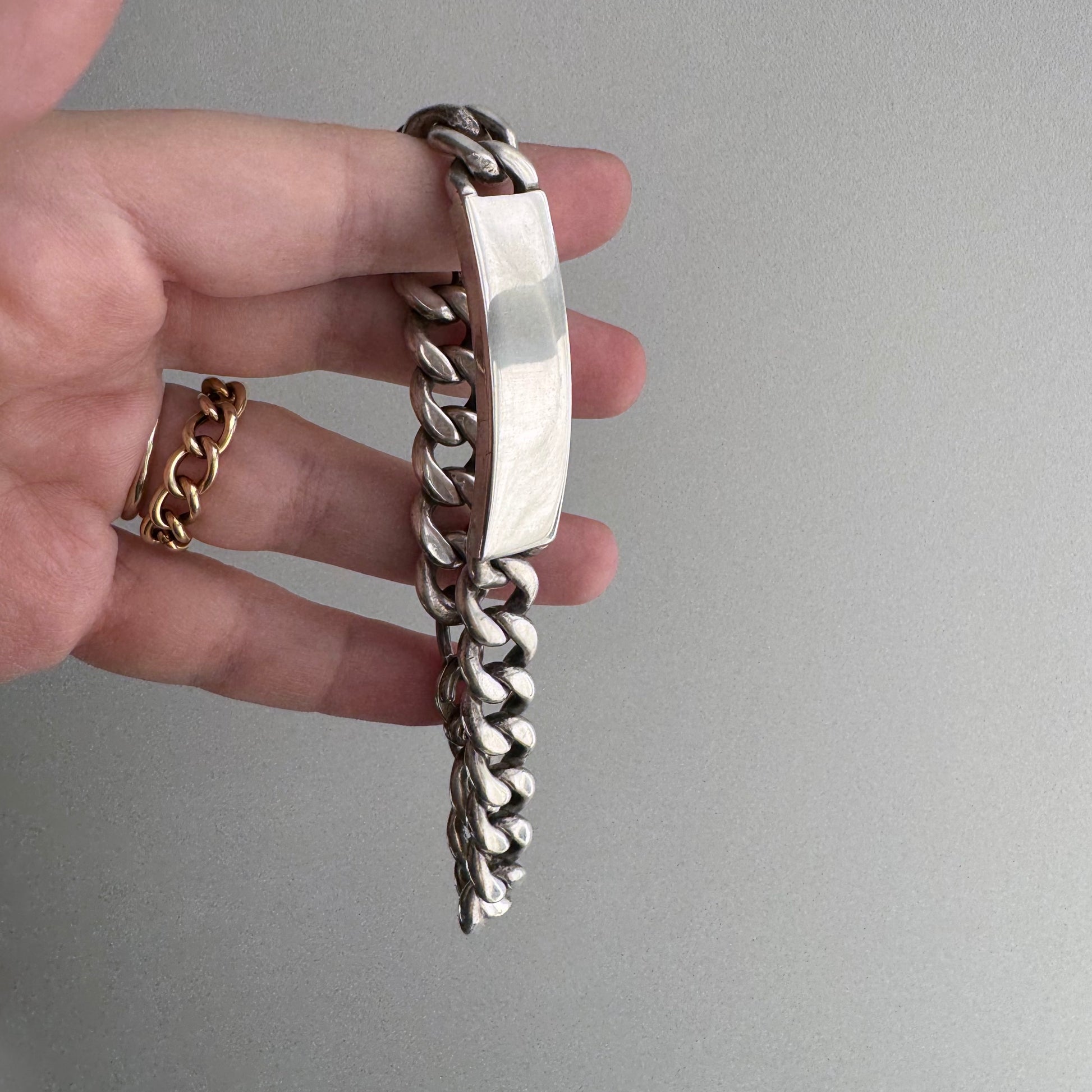 V I N T A G E // blank slate / sterling silver heavy chunky mid century curb chain ID bracelet / 8", 52.5g