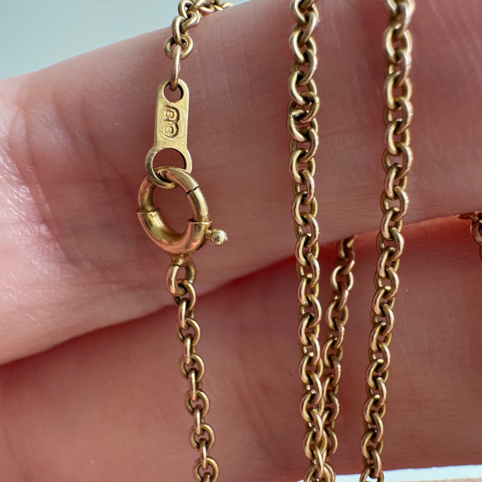 a classic, beautiful older dainty sturdy cable chain in a rosy yellow gold hue of 10k gold