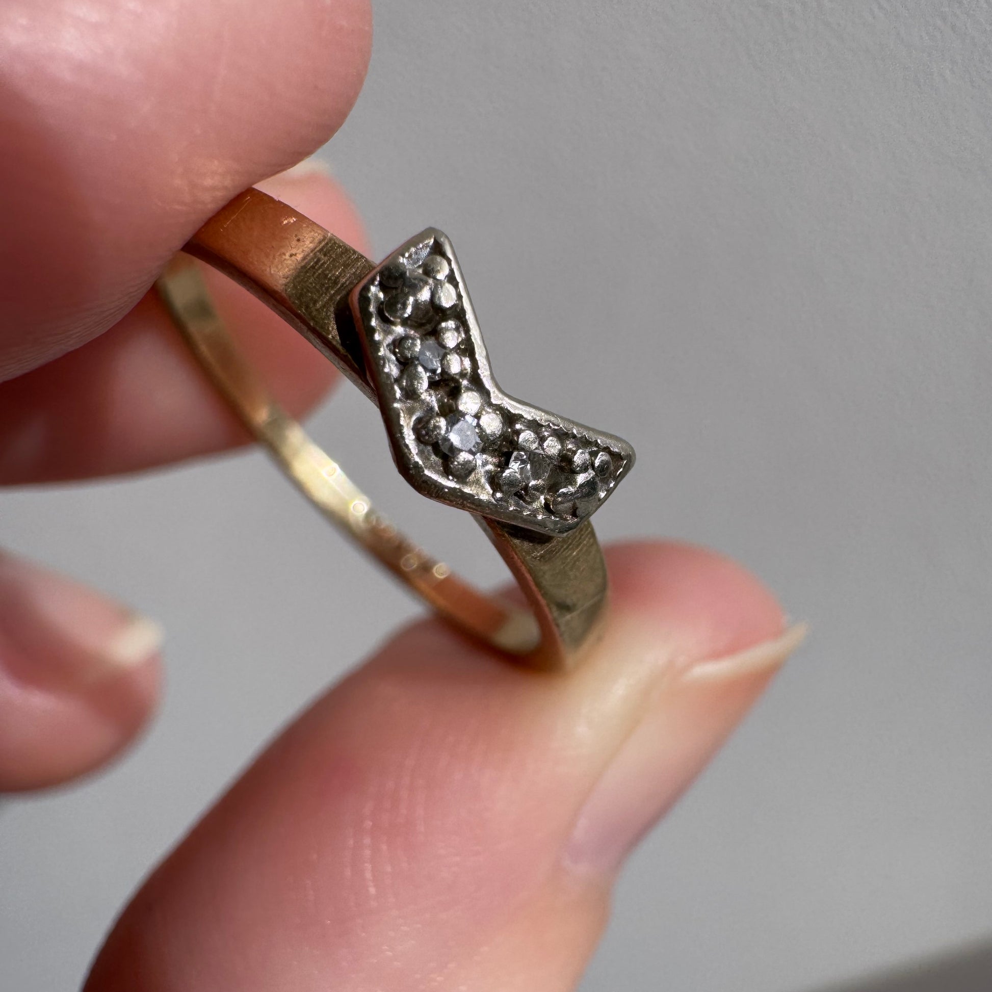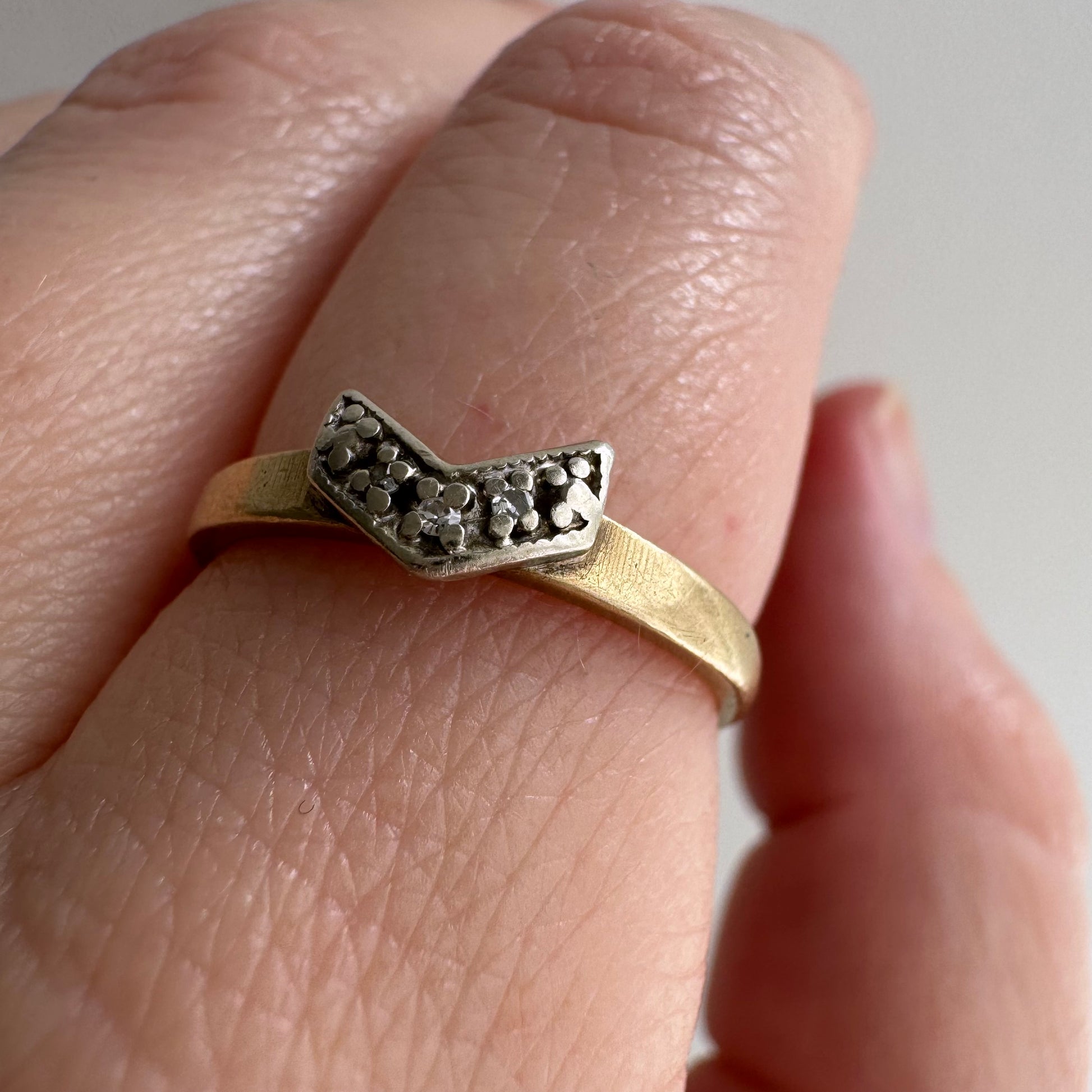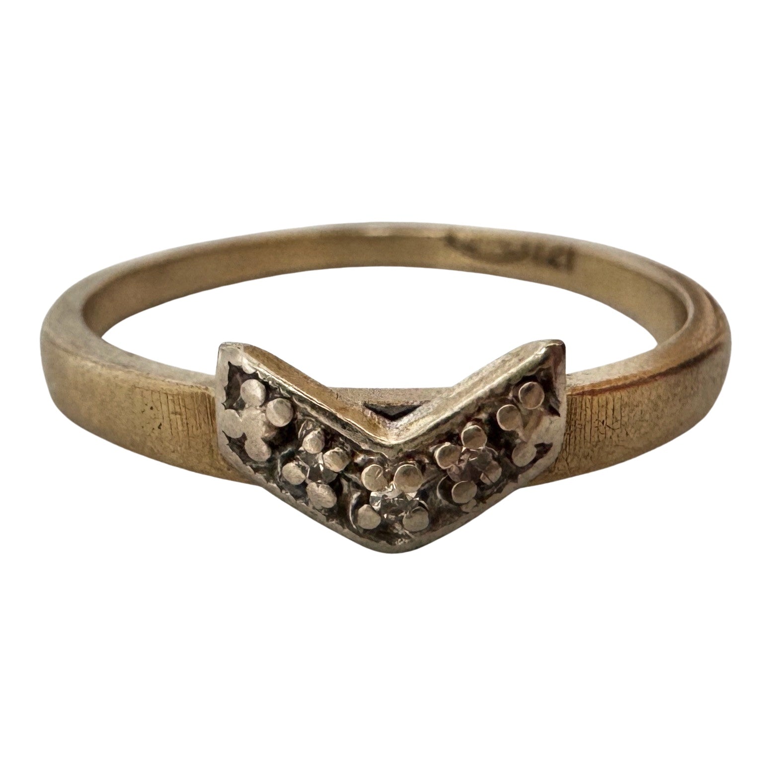 V I N T A G E // directionality / 14k yellow and white gold chevron stacking ring jacket with diamonds / size 6