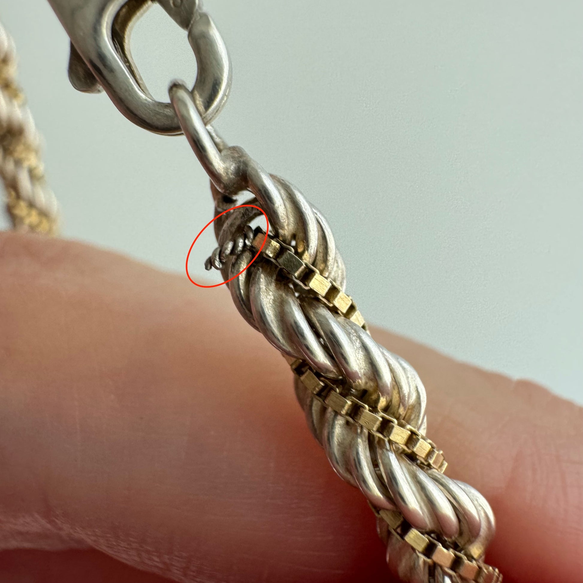 V I N T A G E // do the twist / sterling silver rope and gold vermeil box twist chain / 22.25", 20.8g