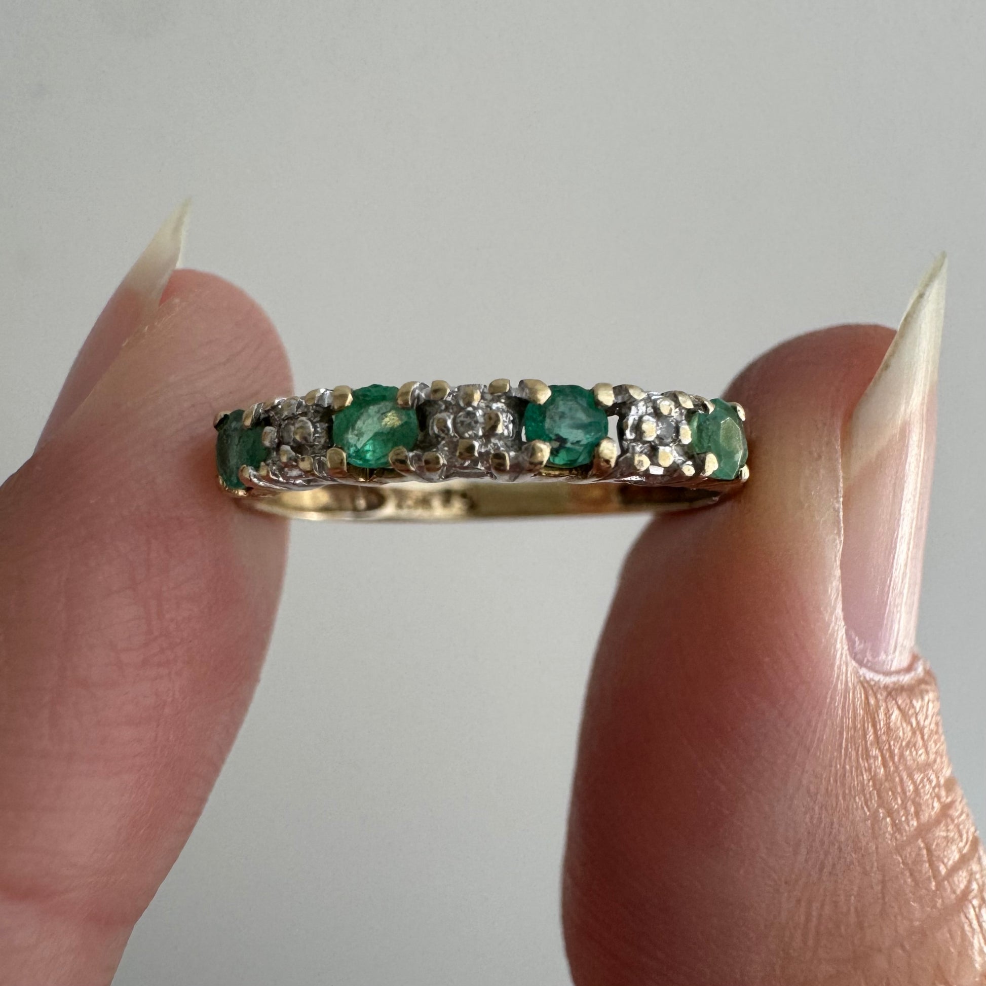 V I N T A G E // enviable green / 10k + emerald + diamond stacking band / size 7
