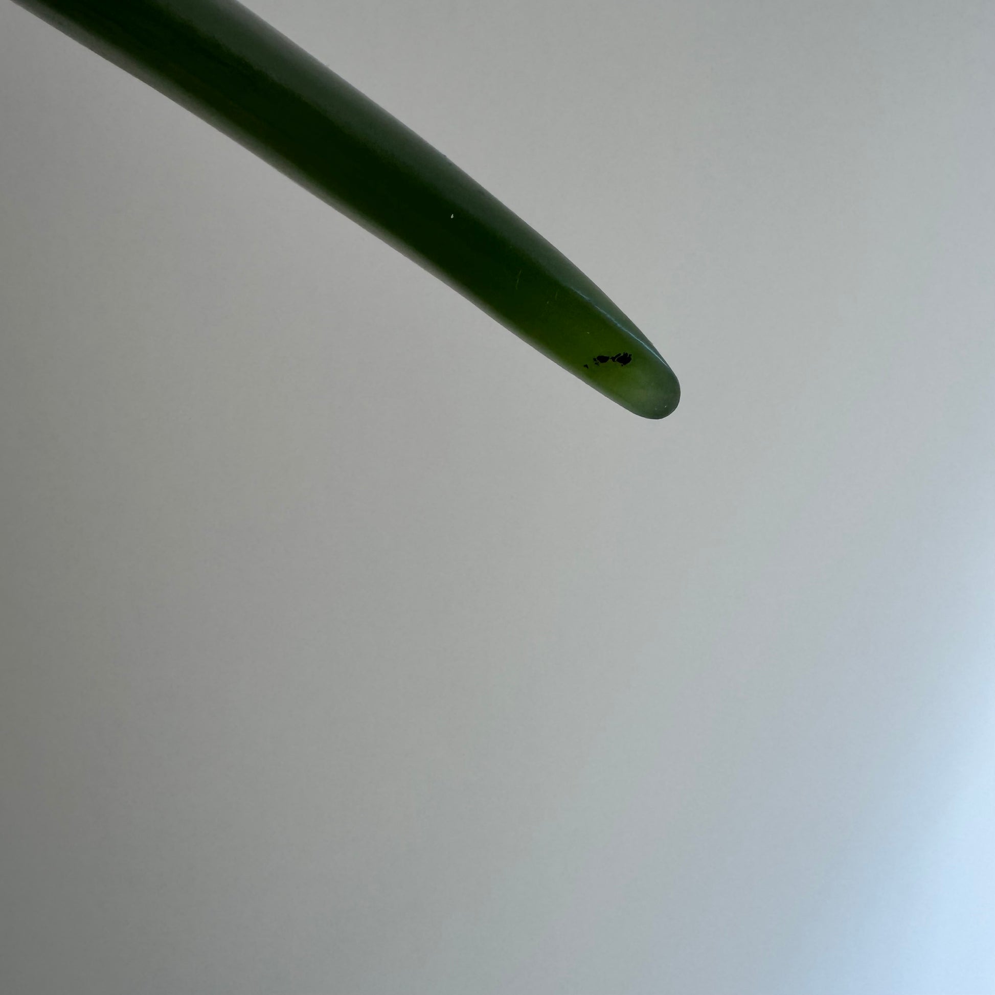 a spectacularly large vintage talon or tusk shaped jade set in a 14k yellow gold bezel bail