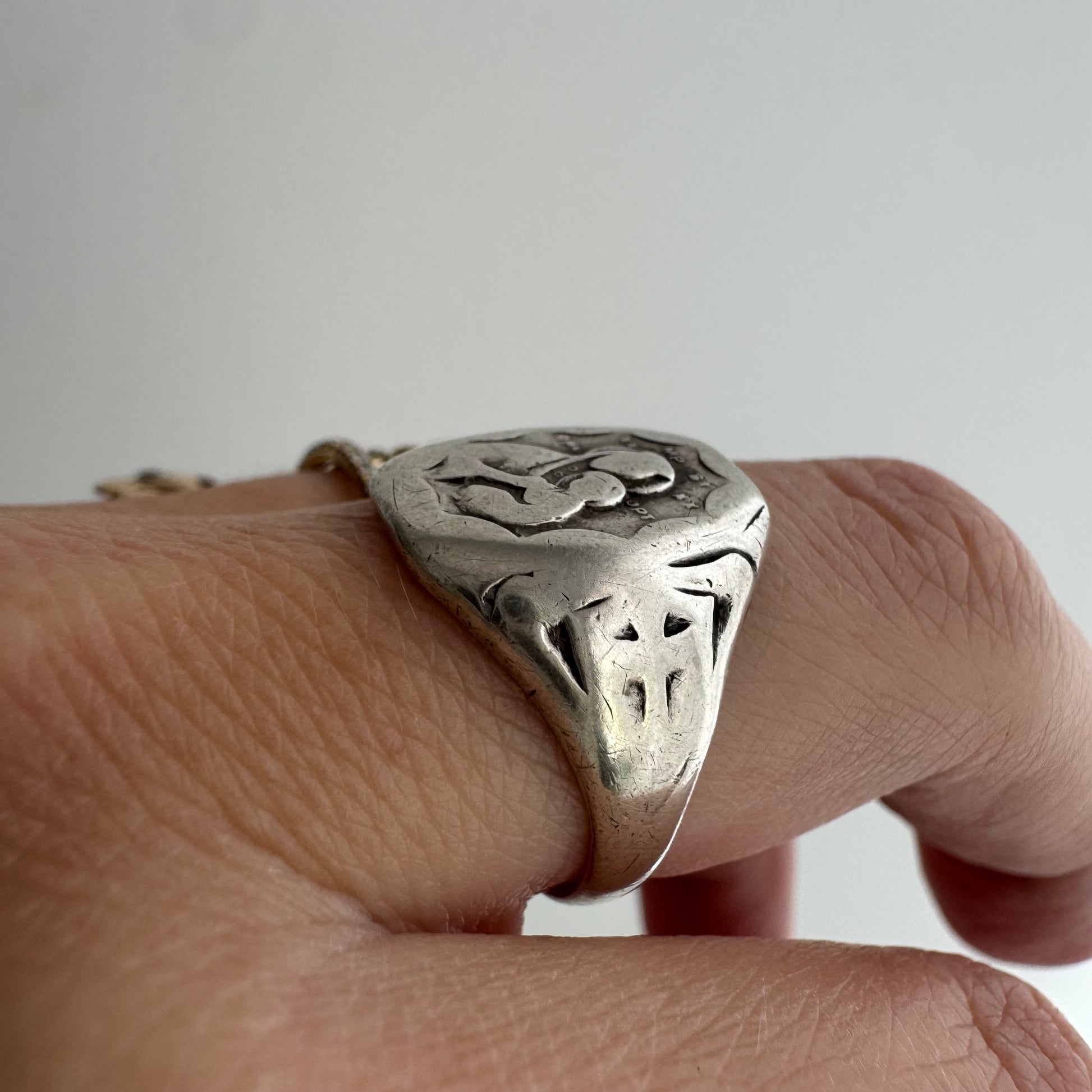 V I N T A G E // eternal mothering / sterling silver Mary and Jesus worn signet ring / size 6.75