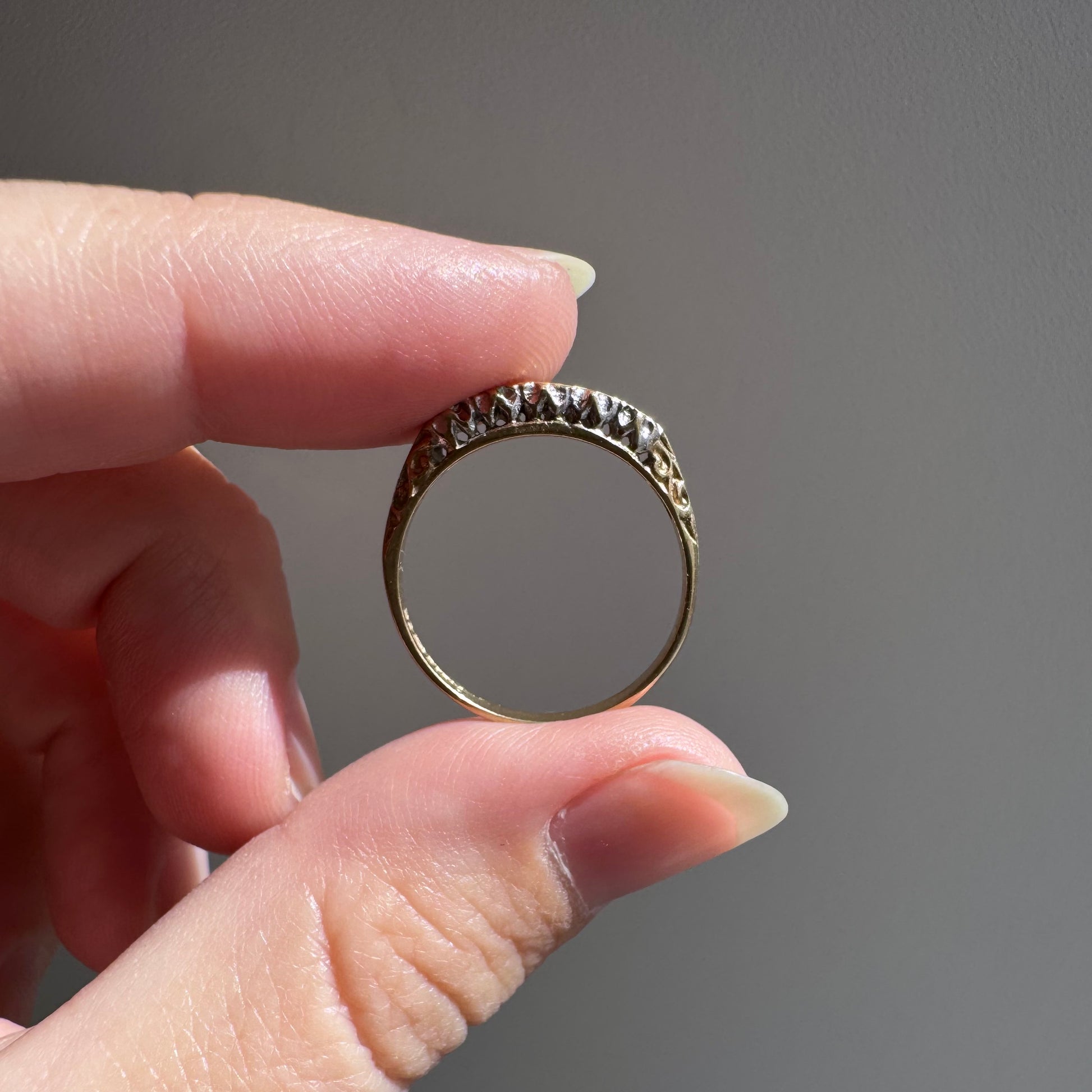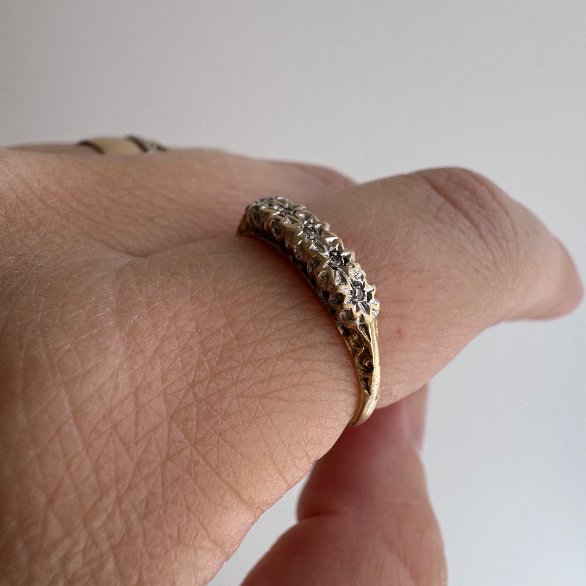 V I N T A G E // five stars / 9k and organic starburst diamond half eternity band / size 6+