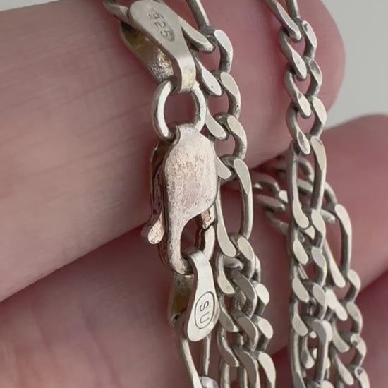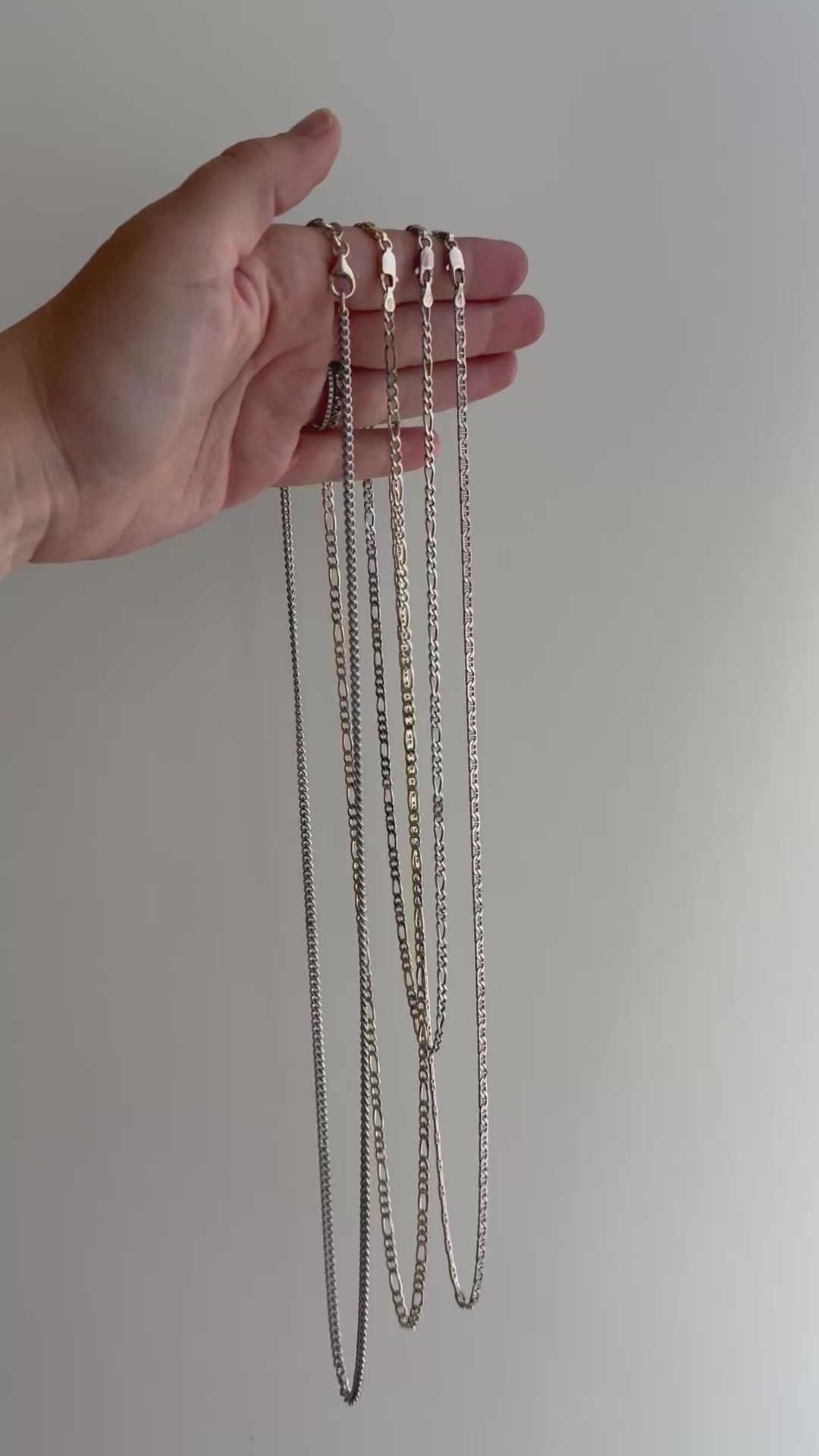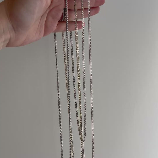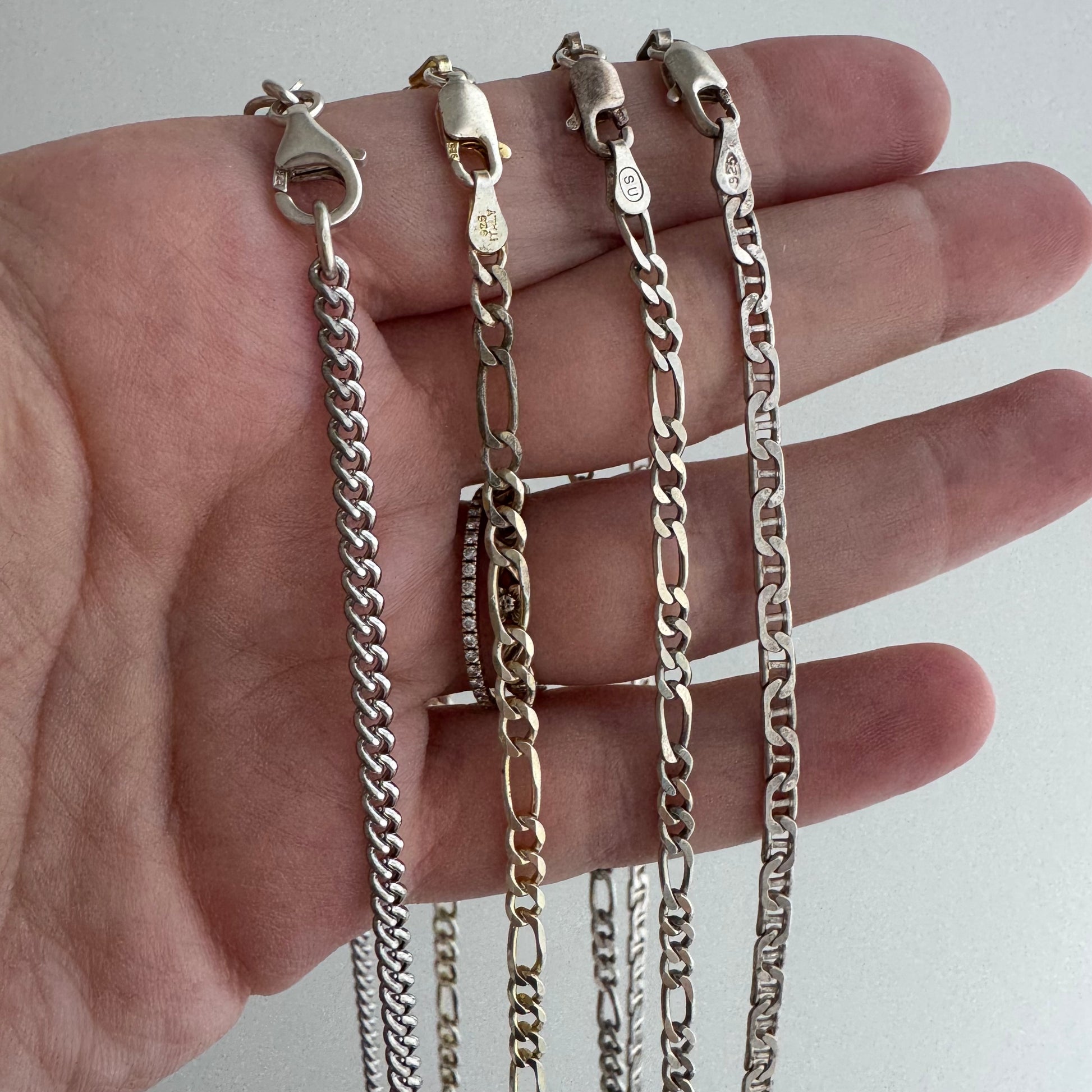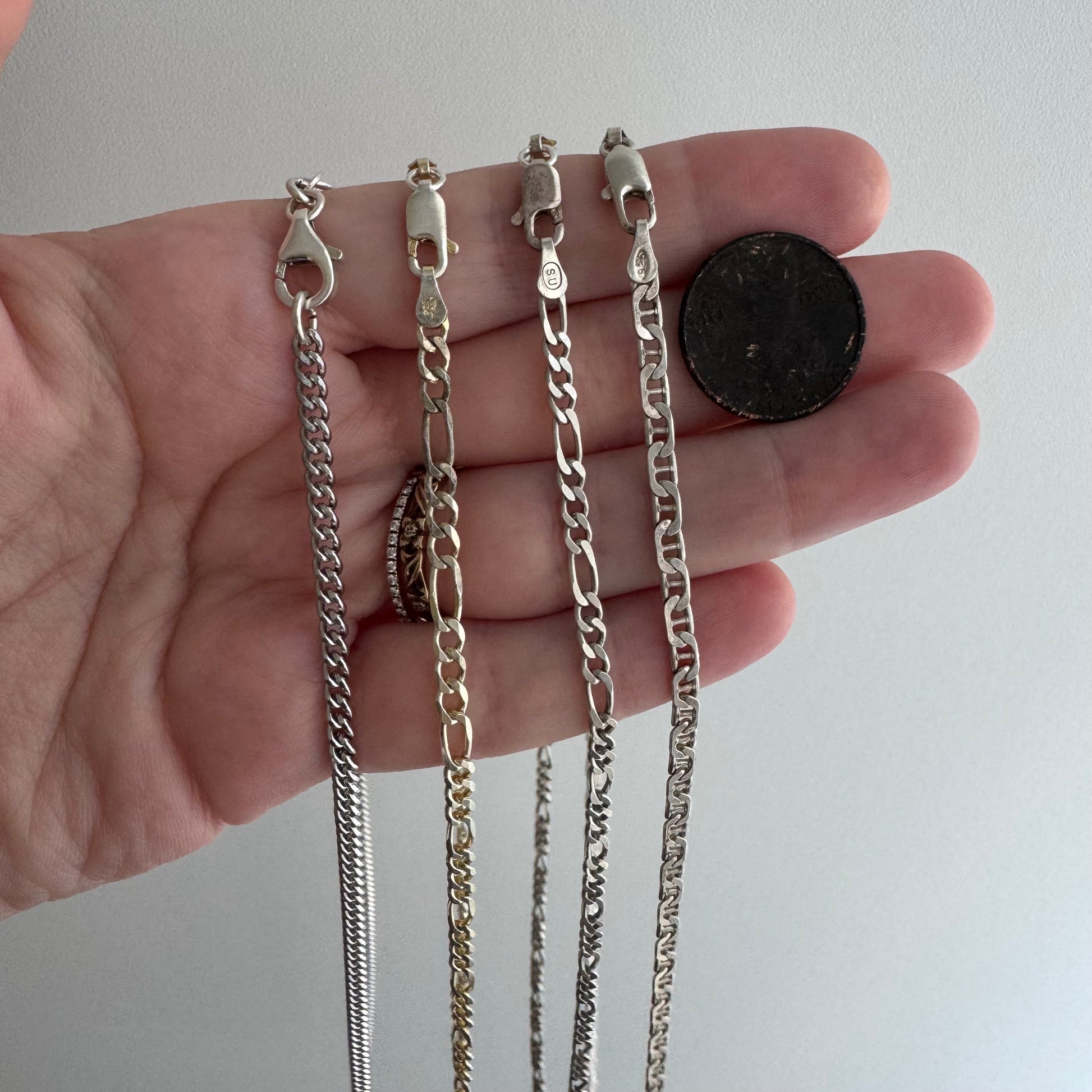 V I N T A G E // flat layers / sterling silver flat link pendant chain necklaces / figaro curb anchor