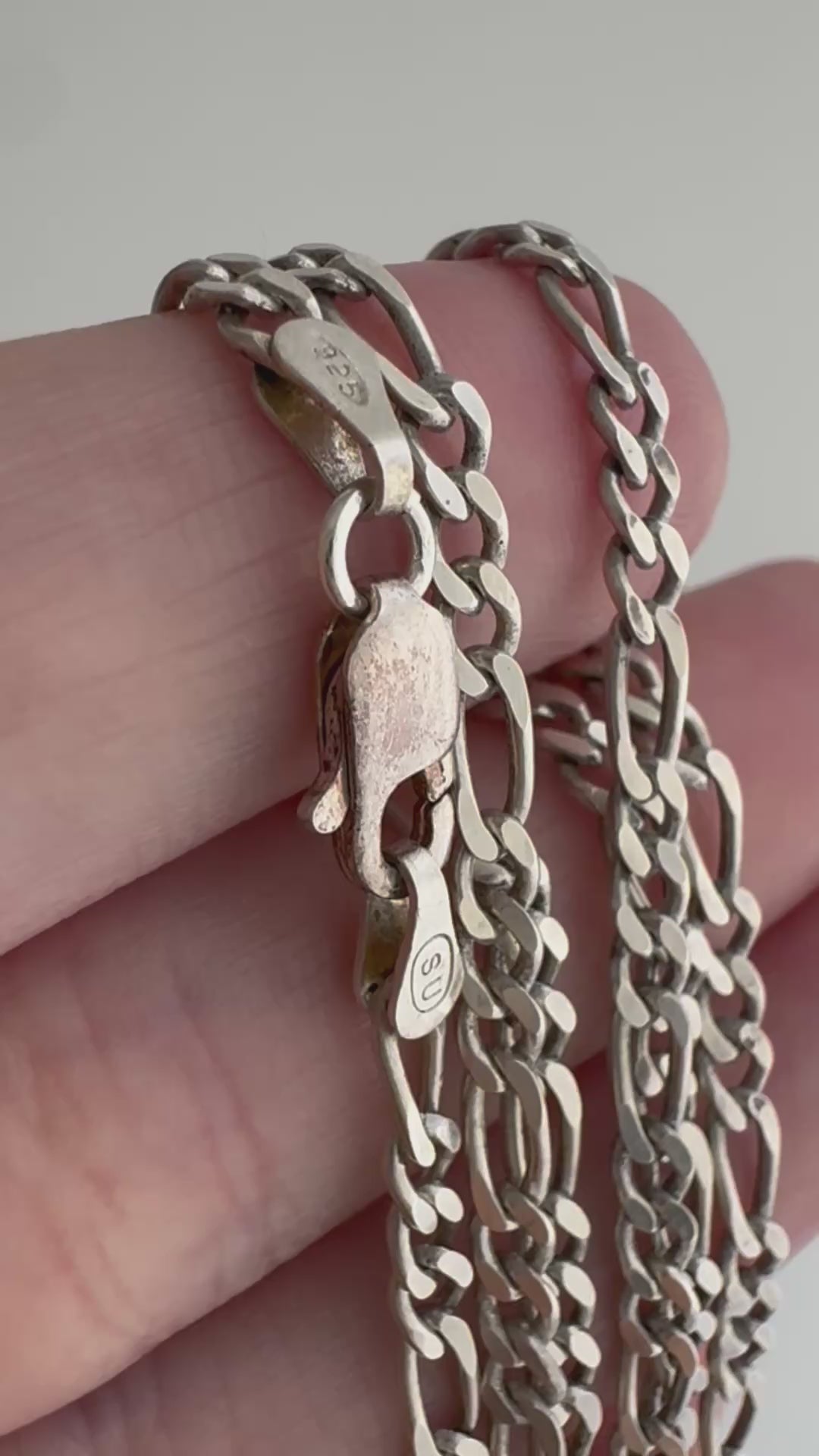 figaro: just under 18" when clasped, ~2.95mm wide link, end bail is ~3.15mm wide, 6.8g