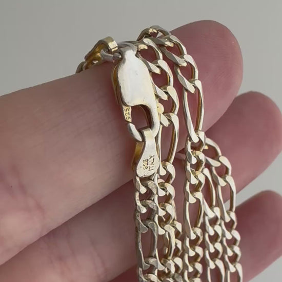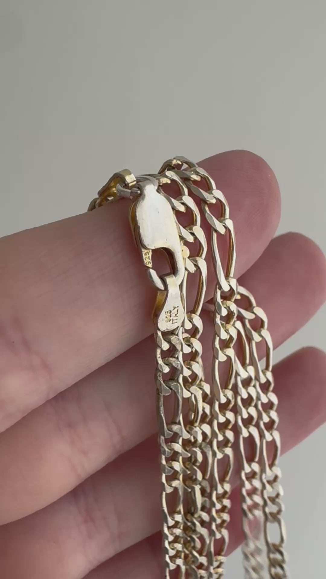 figaro chain w/ gold wash: 24", ~3.25mm wide link, end bail is ~3.1mm wide, 8.7g