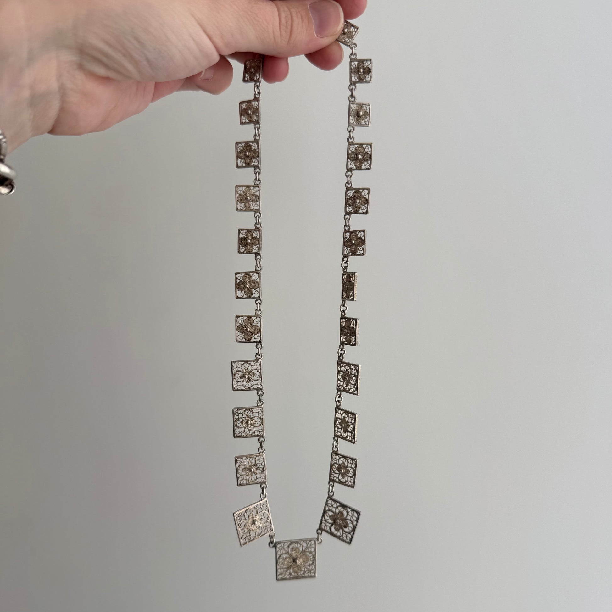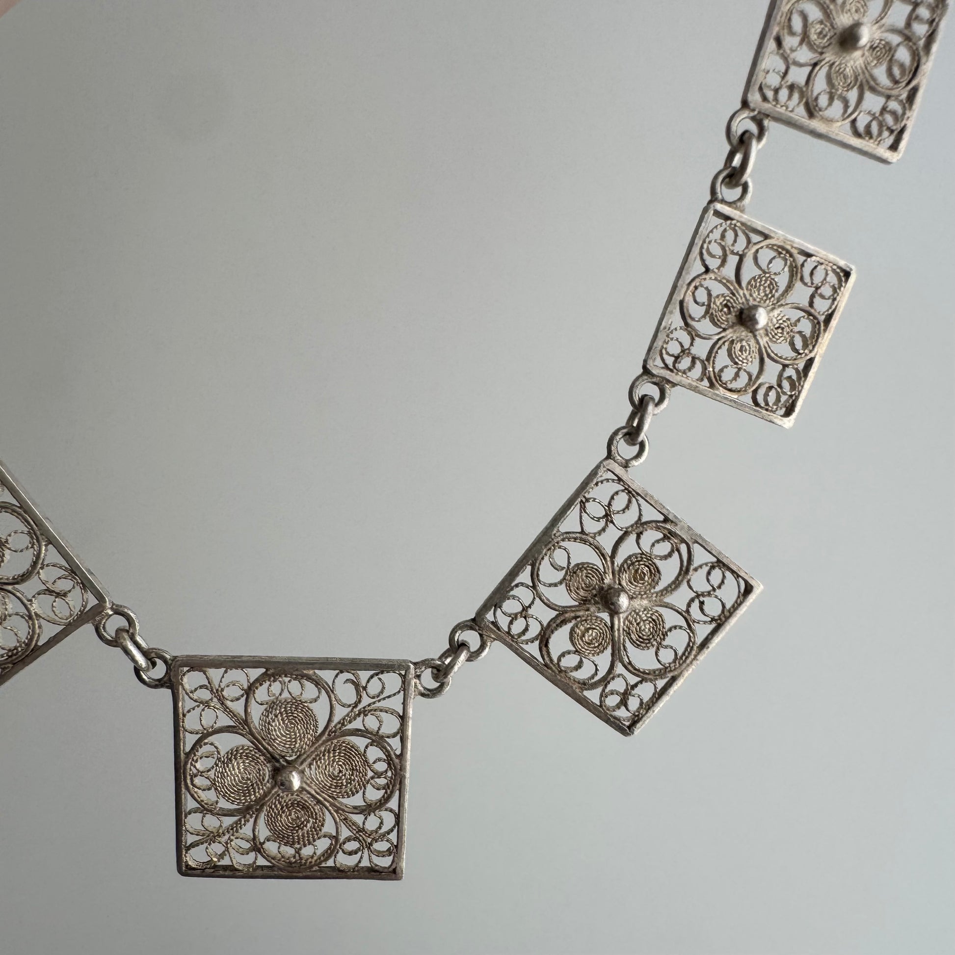 V I N T A G E // floral panels / eastern European 835 silver square floral filigree panel necklace / 17", 18g