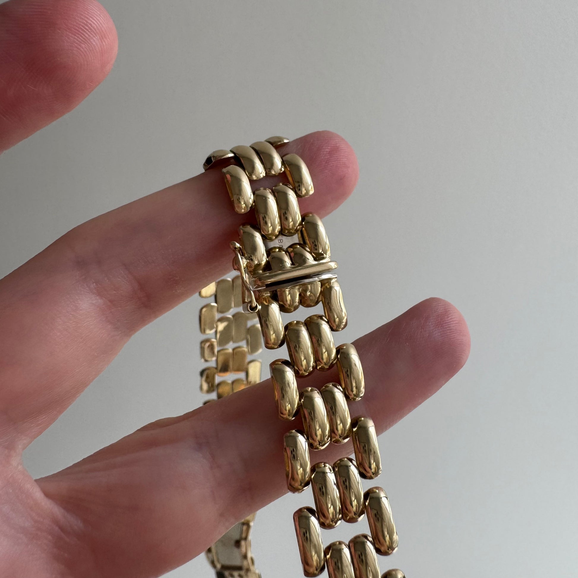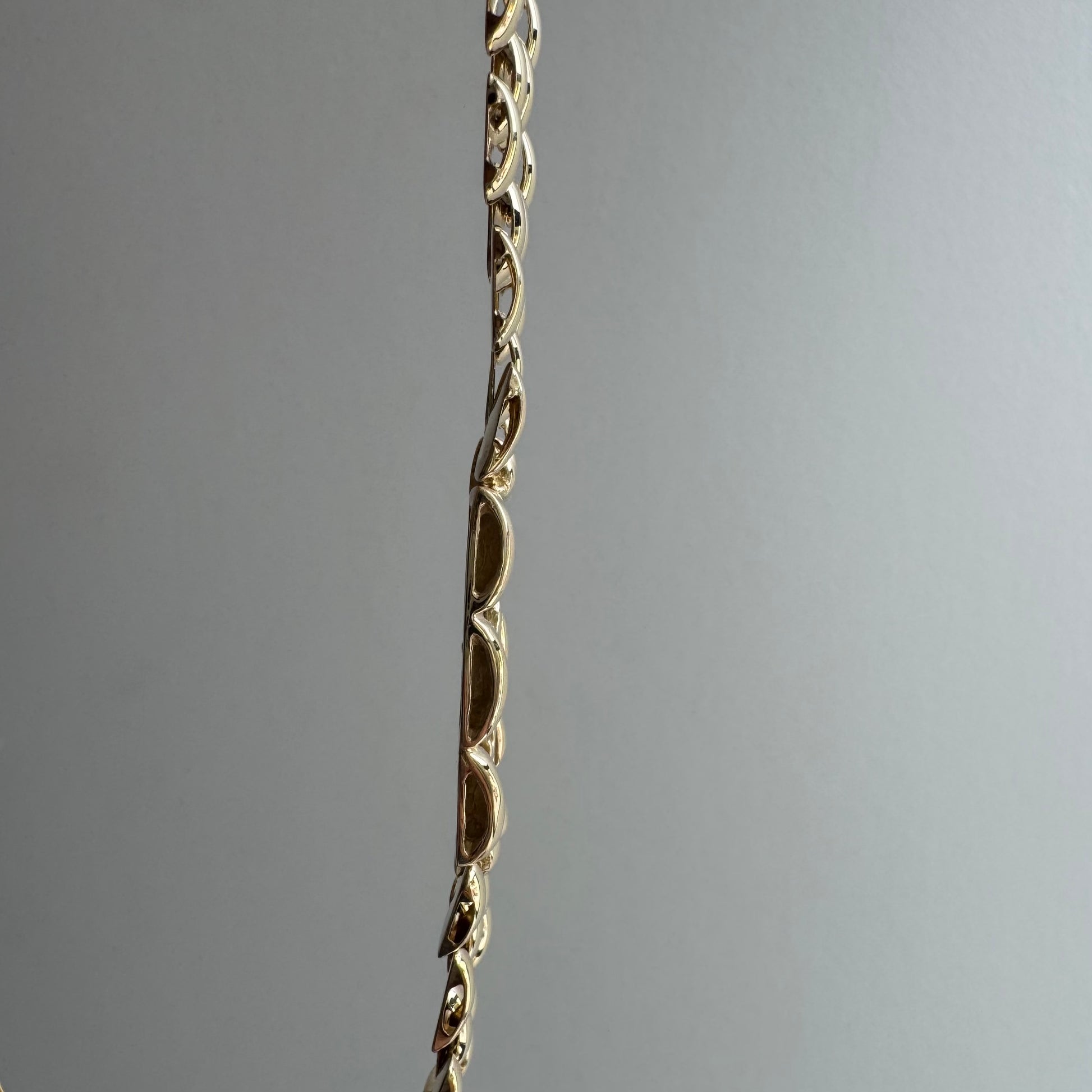 solid 14k yellow gold + white gold accenting (semi-hollow links)