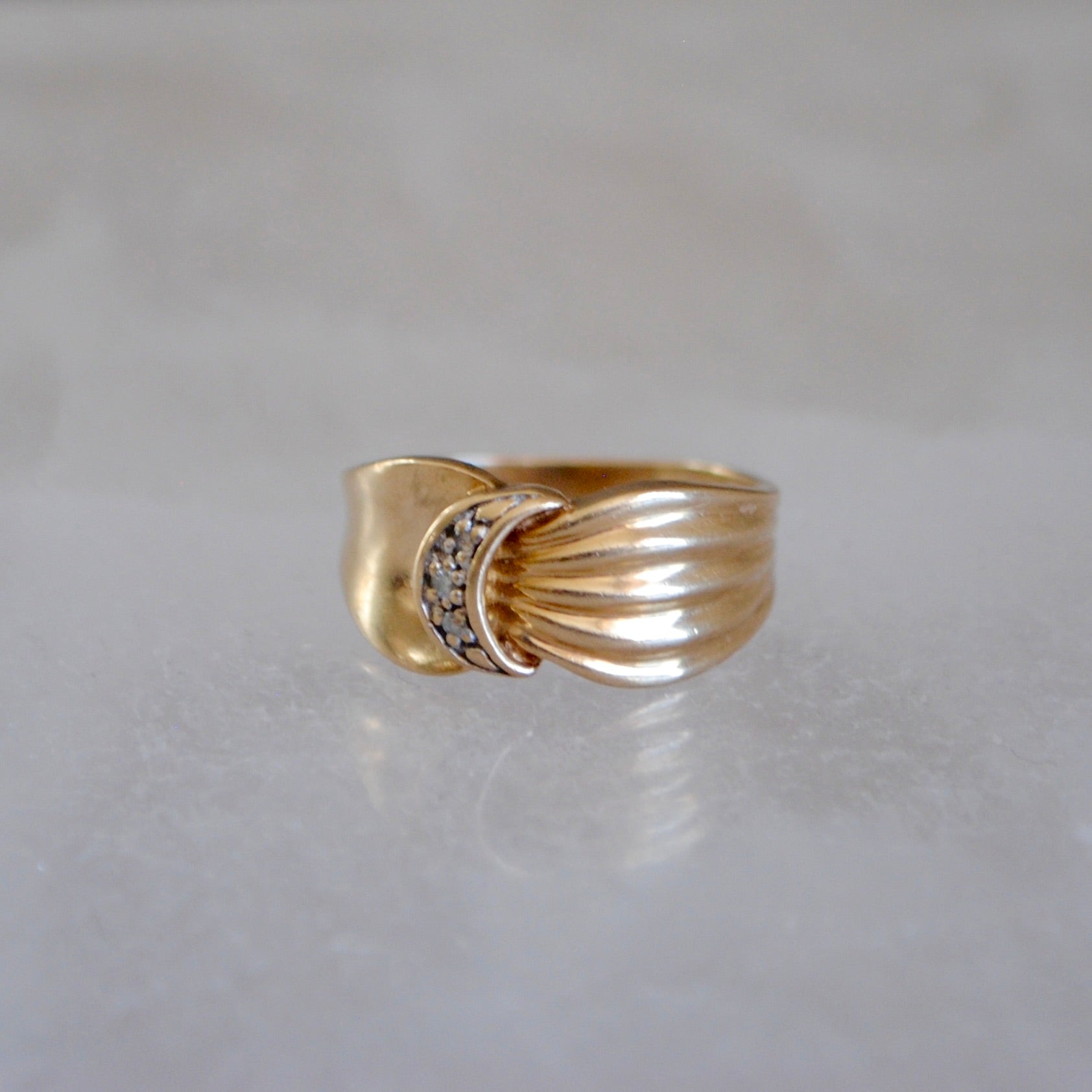 V I N T A G E // held by the moon / 10k and diamond crescent moon ring / size 6.25