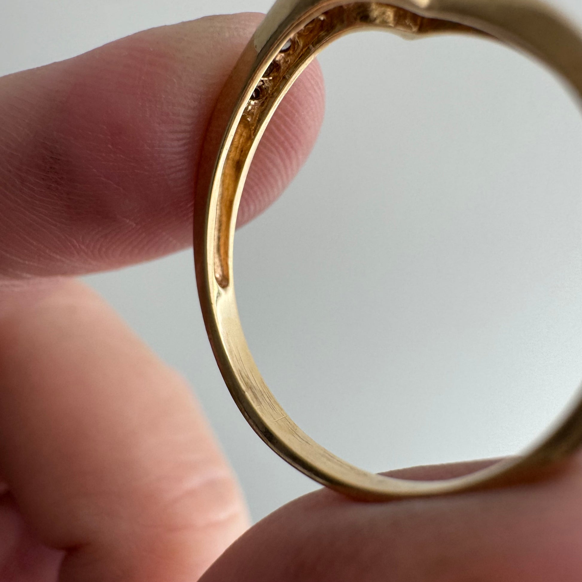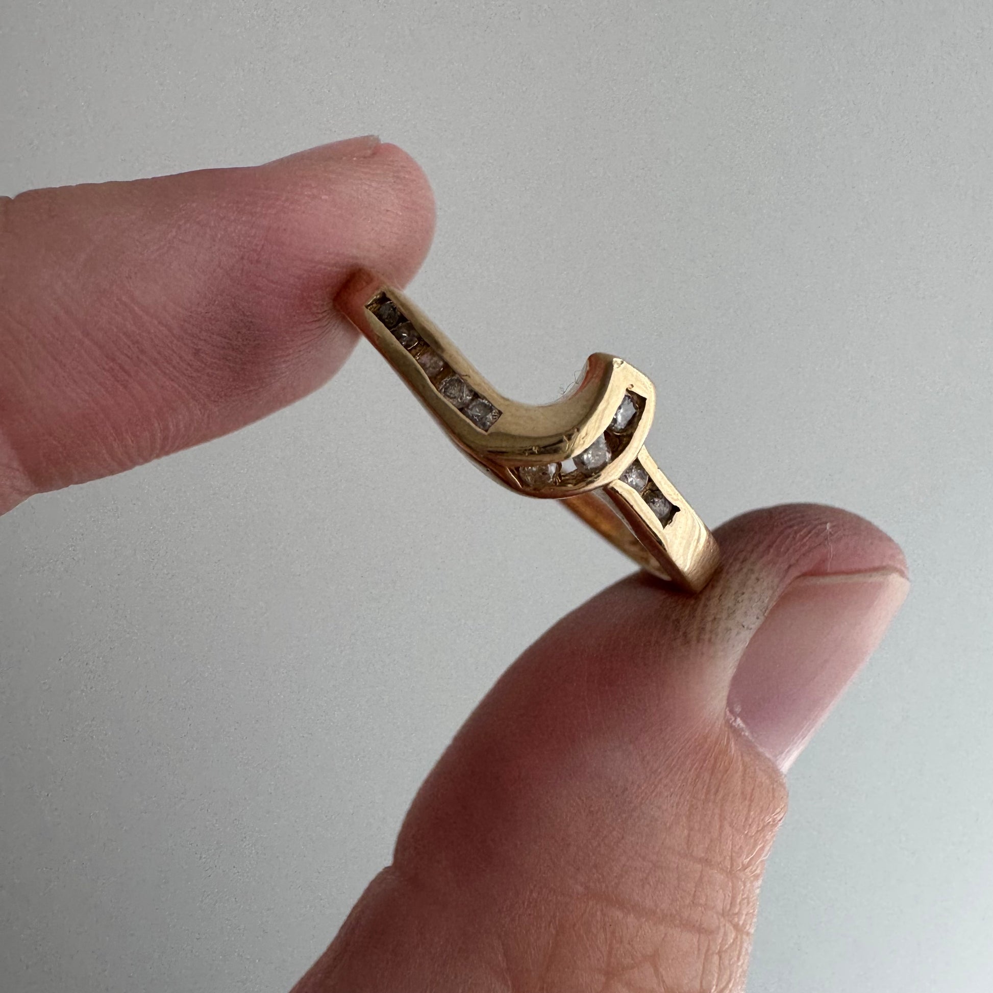 V I N T A G E // helpful hug / 10k and diamond swirly ring guard stacking band / size 8.75