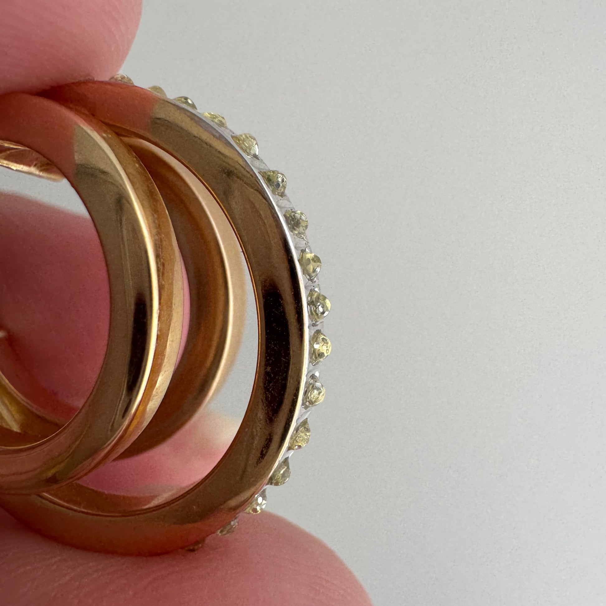 V I N T A G E // I see three / 14k yellow gold triple hoop with rough cut diamonds / hoop earrings