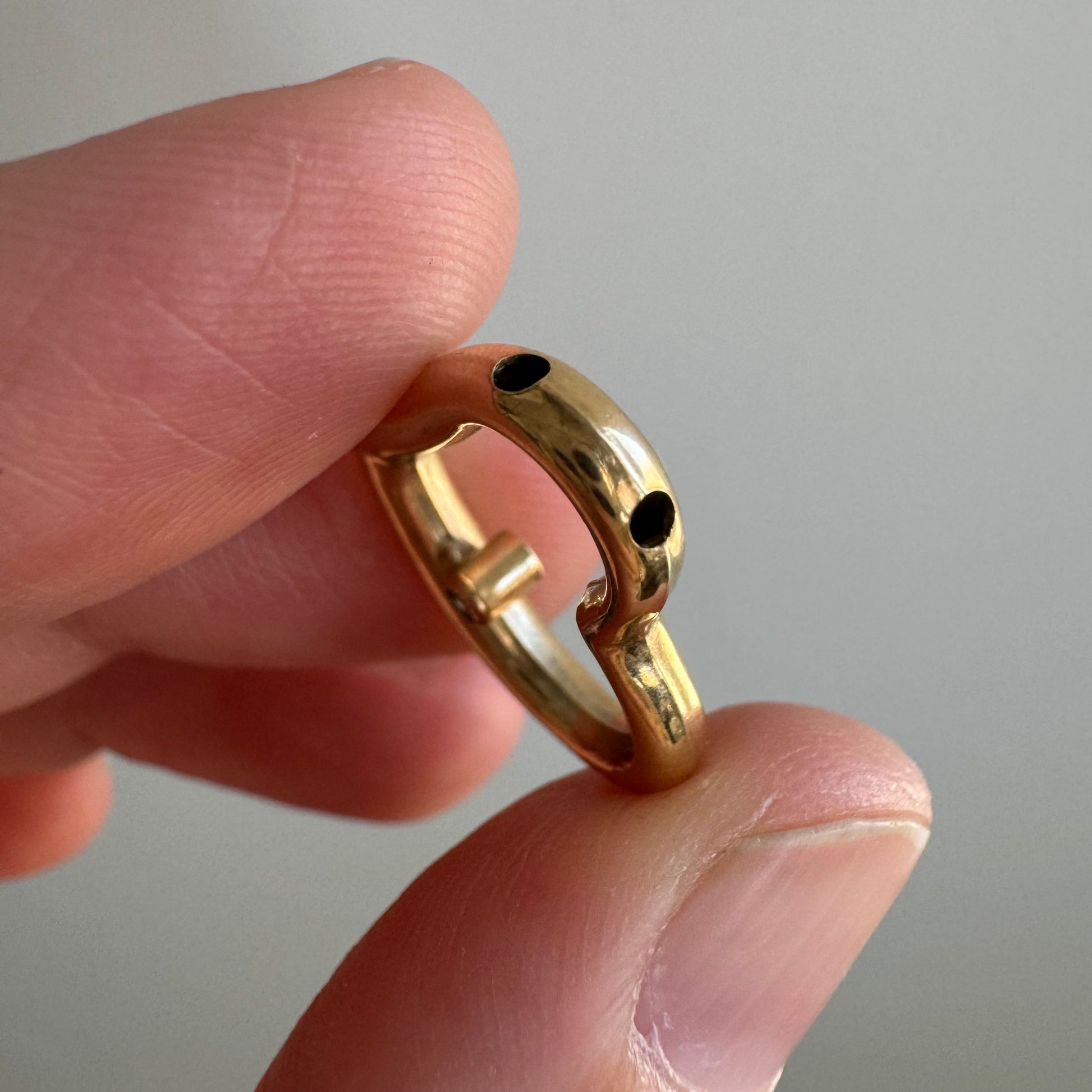 a heart full of possibilities. it has an organic shape that nods to a heart shape popularized by a designer. will youwear it with a very dainty chain strung through the holes? or with a the chain through the opening of the heart? or hanging from a hoop earring? something else?