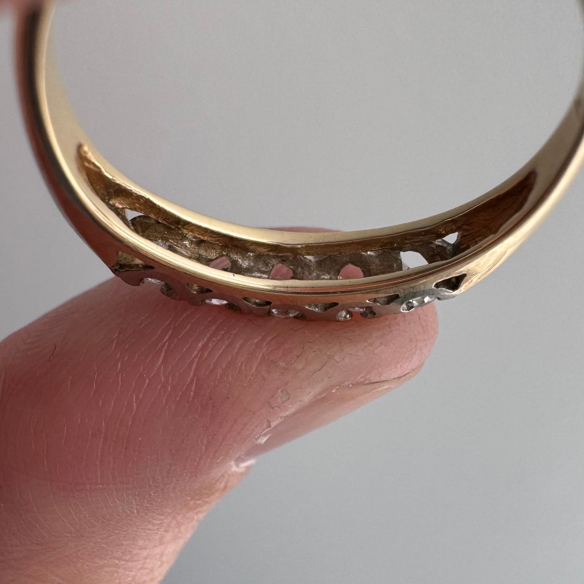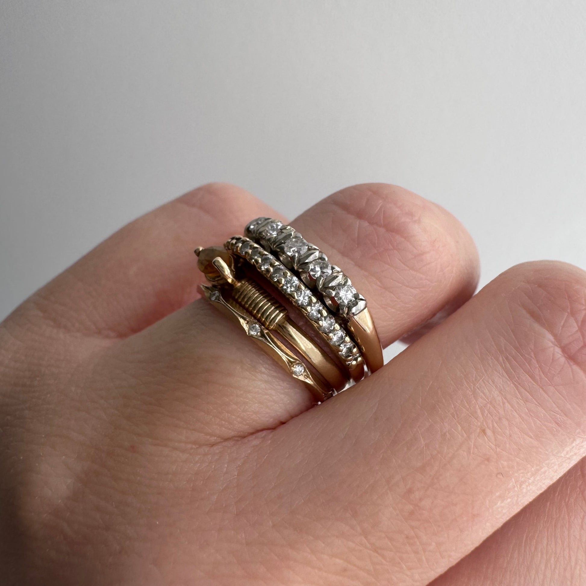 V I N T A G E // mid century magic / 14k yellow and white gold five stone diamond stacking band / size 7