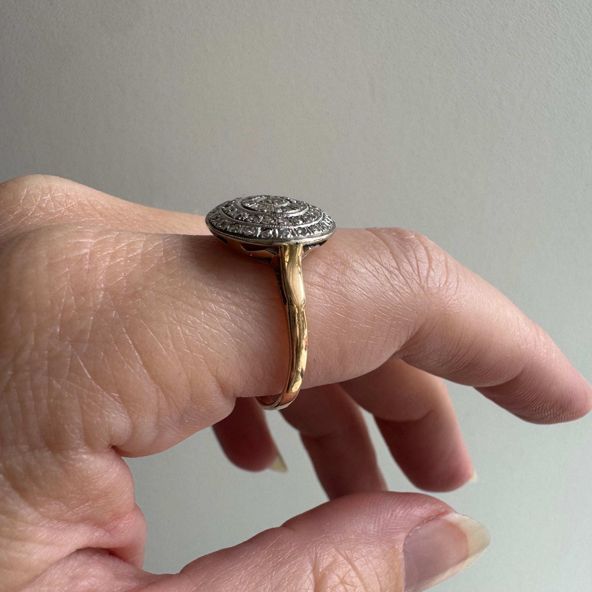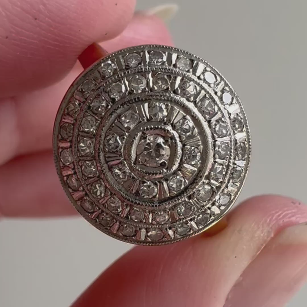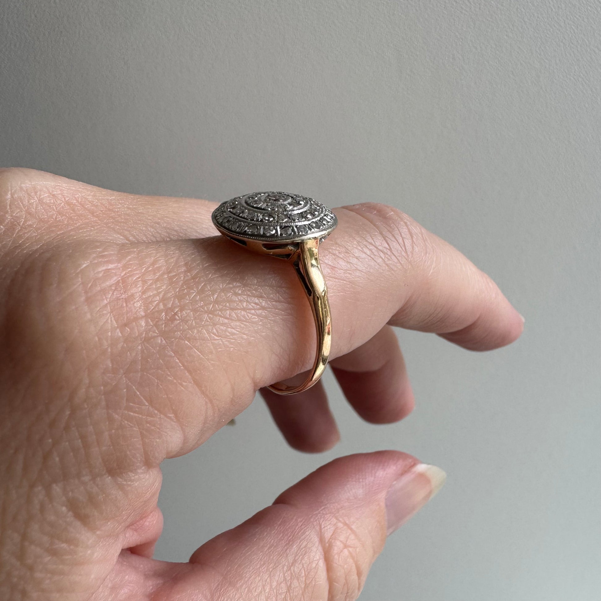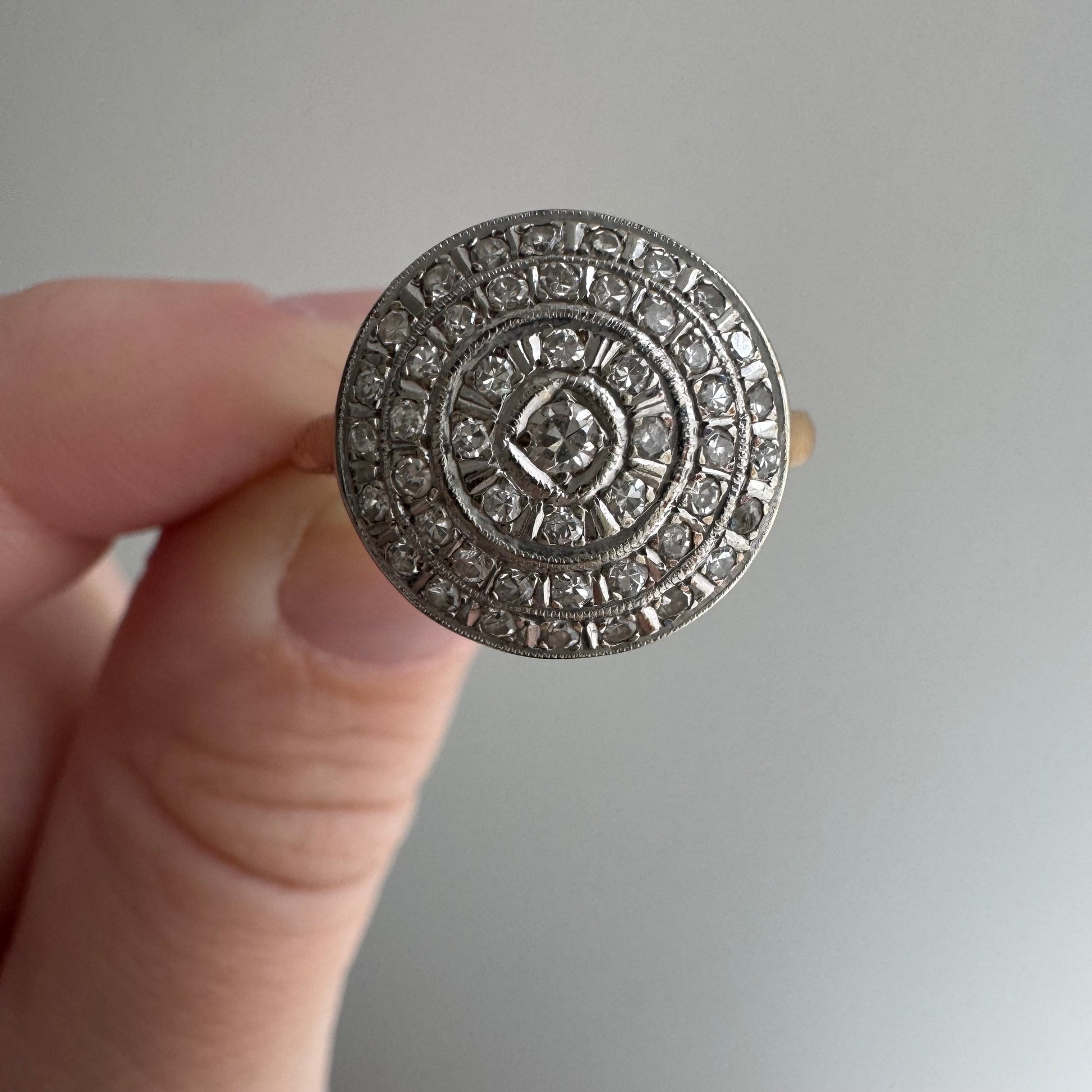 V I N T A G E // moon daisy / 14k yellow and white gold late art deco round concentric circle cluster ring / size 9.25+
