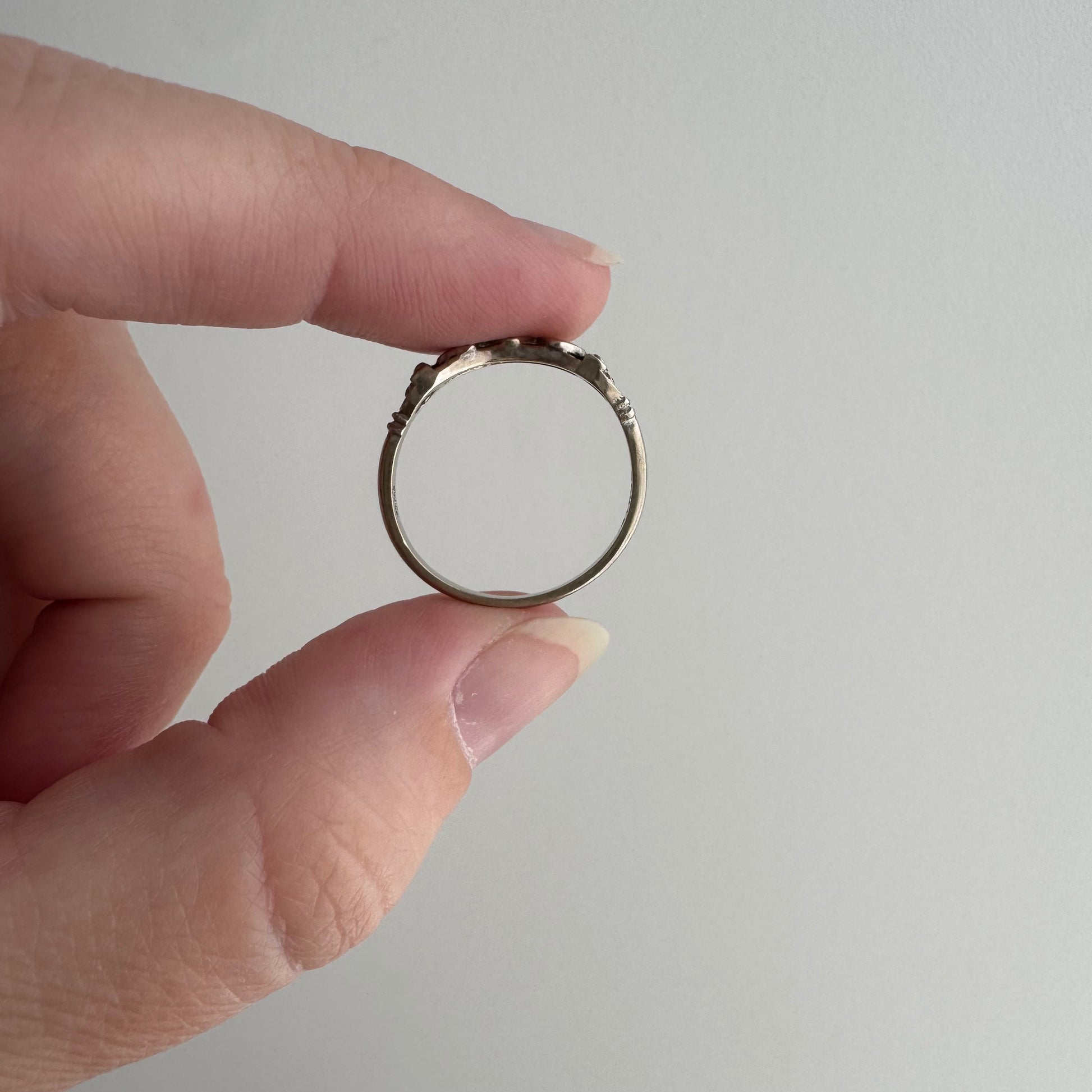 V I N T A G E // nouveau rainbow / 14k white gold curved wedding band / size 6
