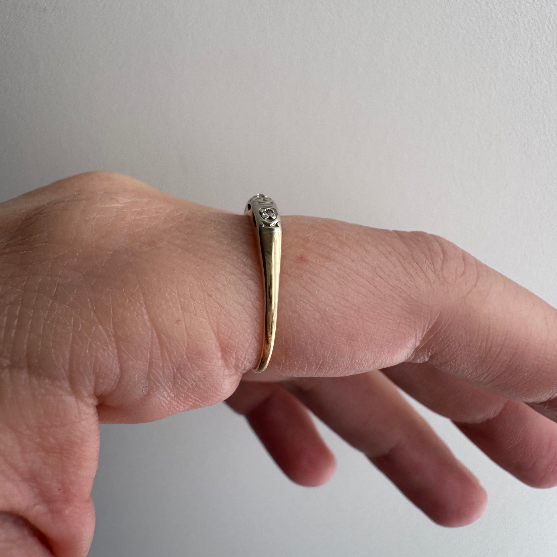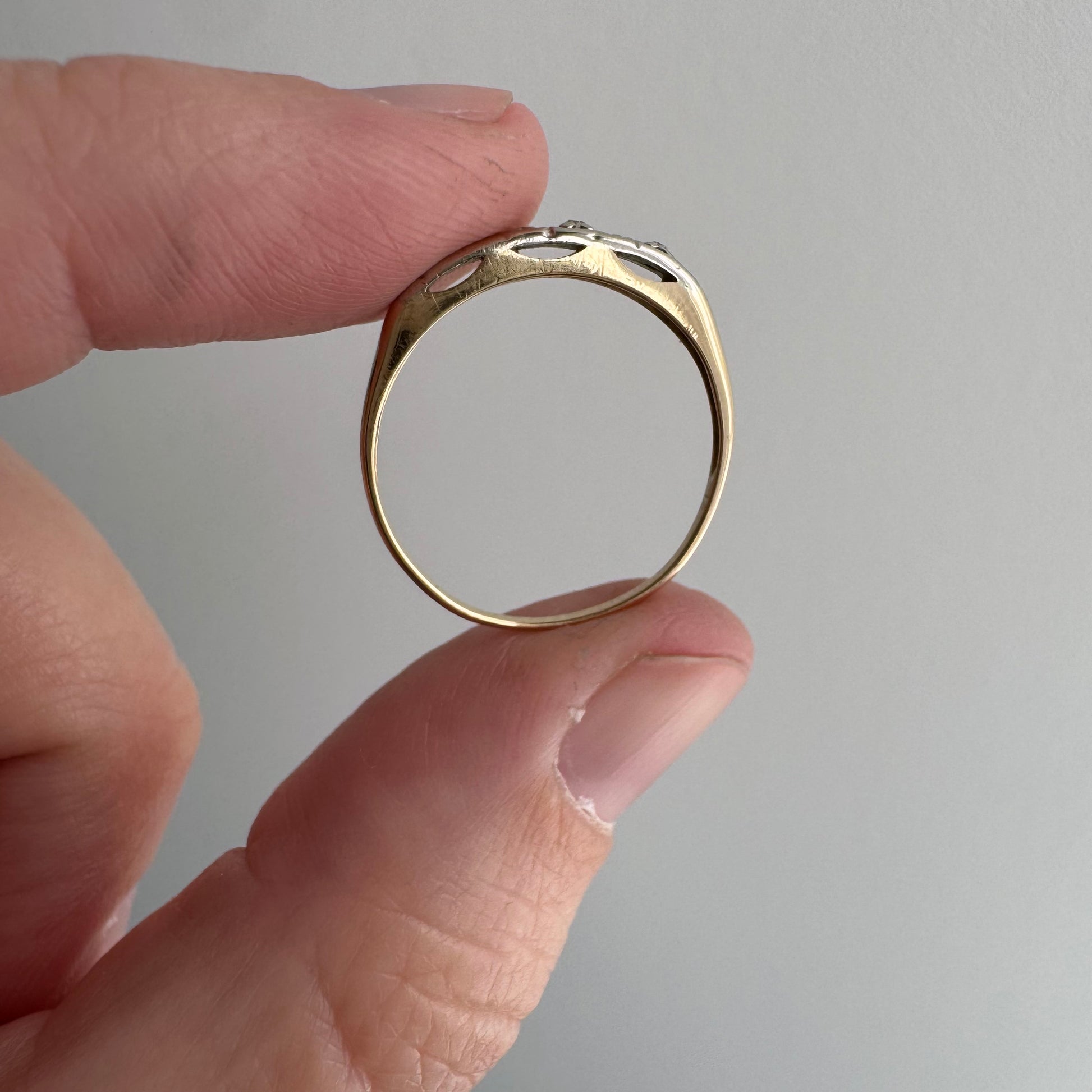 V I N T A G E // peculiar petals/ 14k yellow and white gold late art deco diamond band / size 6