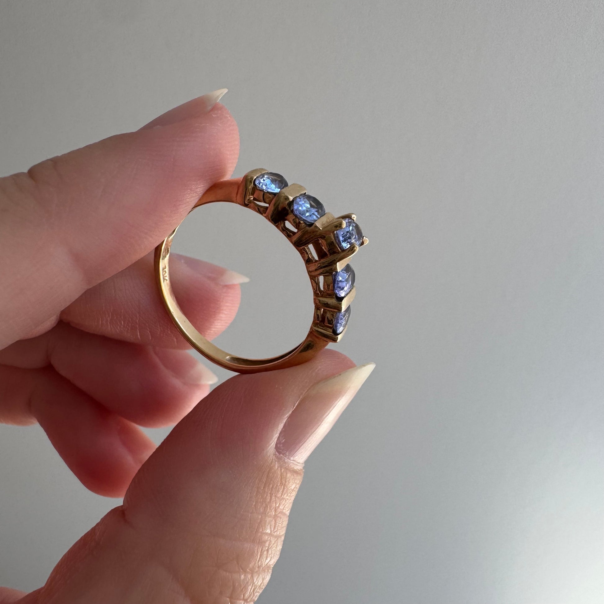 V I N T A G E // periwinkle row / 10k yellow gold and tanzanite half eternity band / size 8