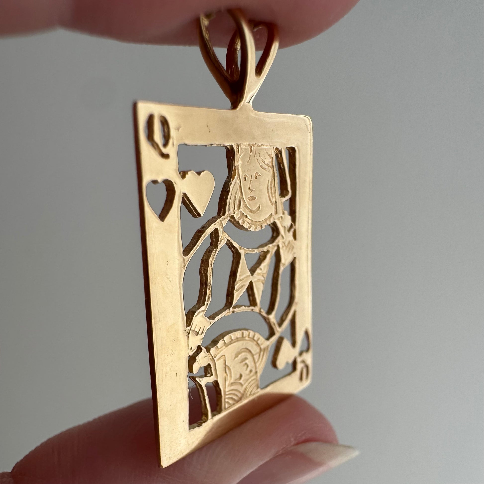 V I N T A G E // queen of hearts / 14k yellow gold playing card cut out / a pendant