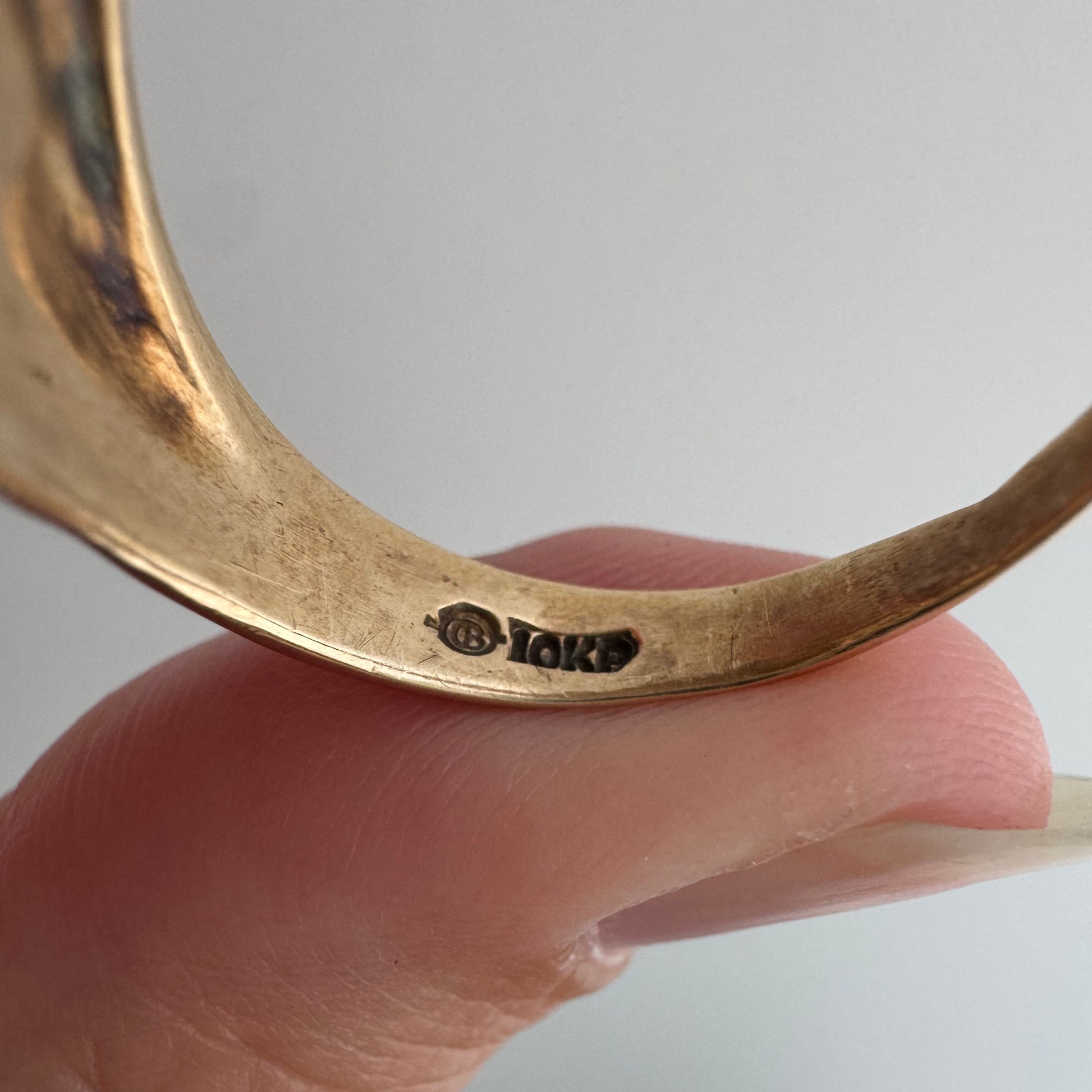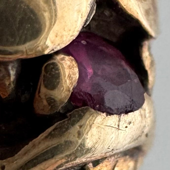 -rich, brassy, time-earned, almost-pink patina throughout the design details — a jeweler could polish back to its true yellow hue, but you'd lose the dynamic contrast