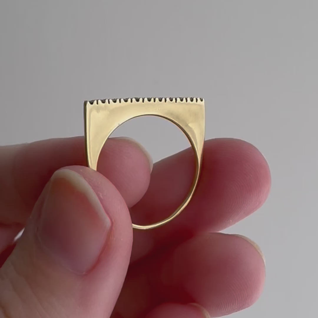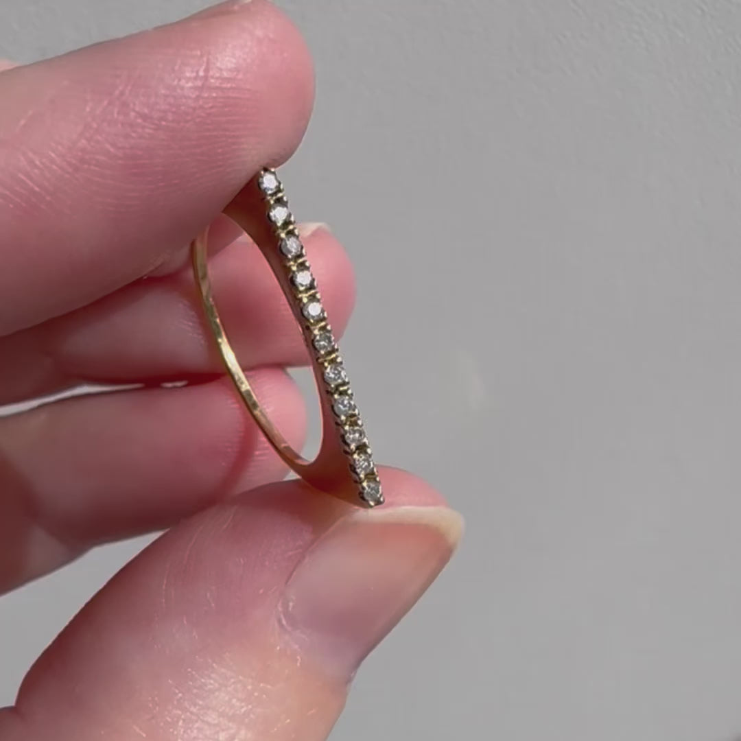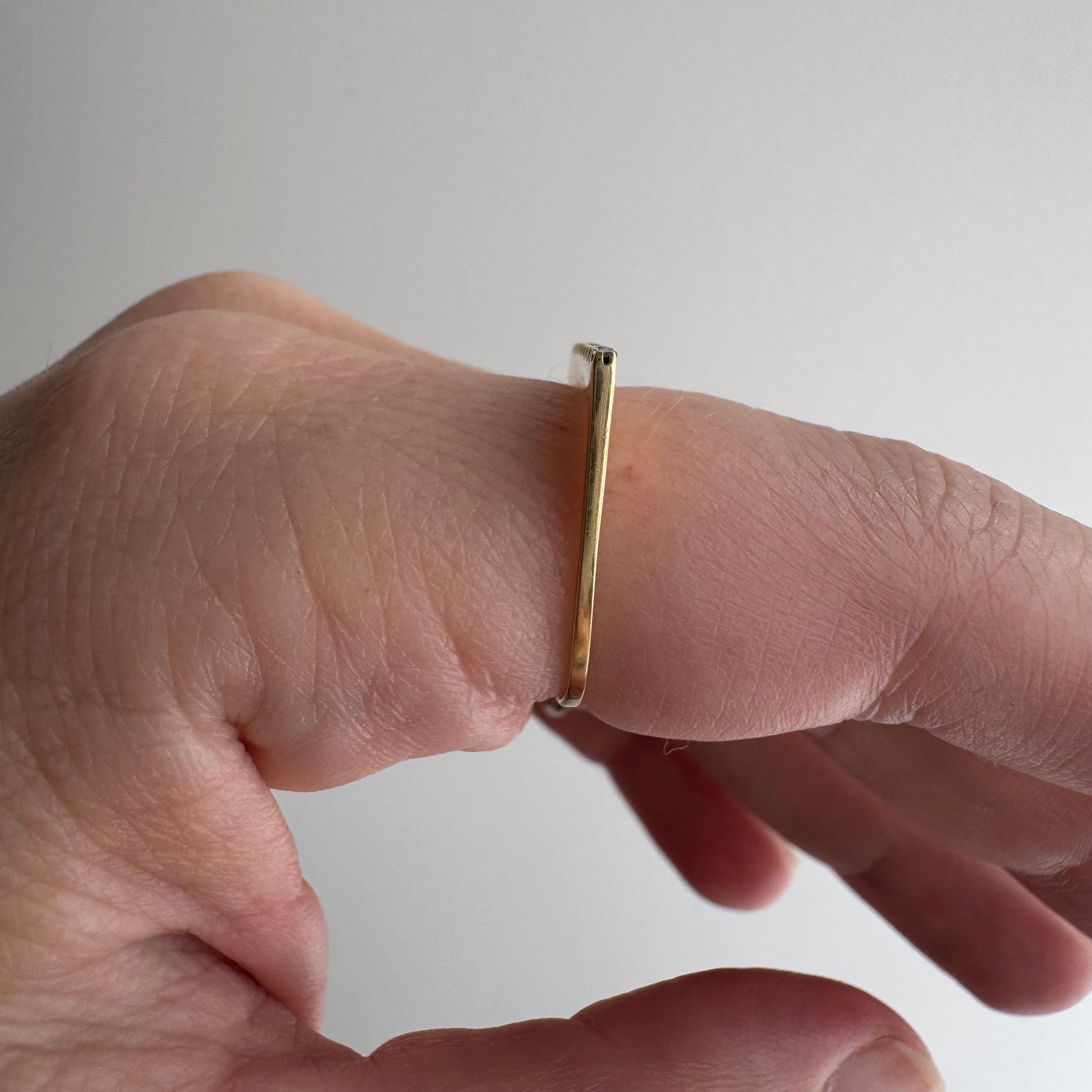 V I N T A G E // shape play / 18k squared flat top pipe cut skinny stacking diamond half eternity band / size 5.75