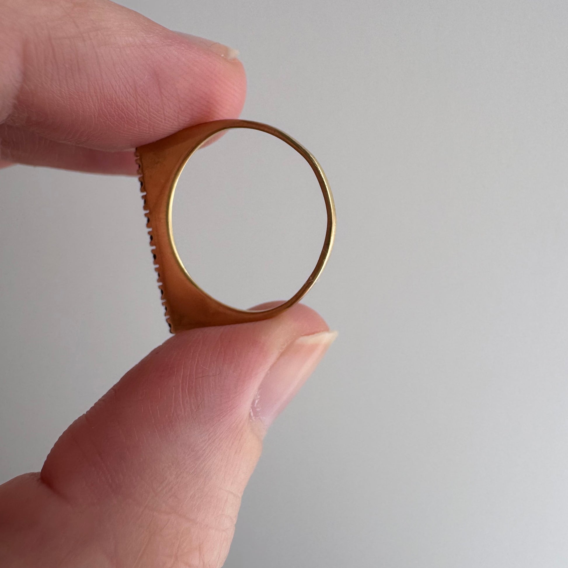 solid 18k (unmarked, mark was lost to a previous sizing) with 11 tiny natural diamonds