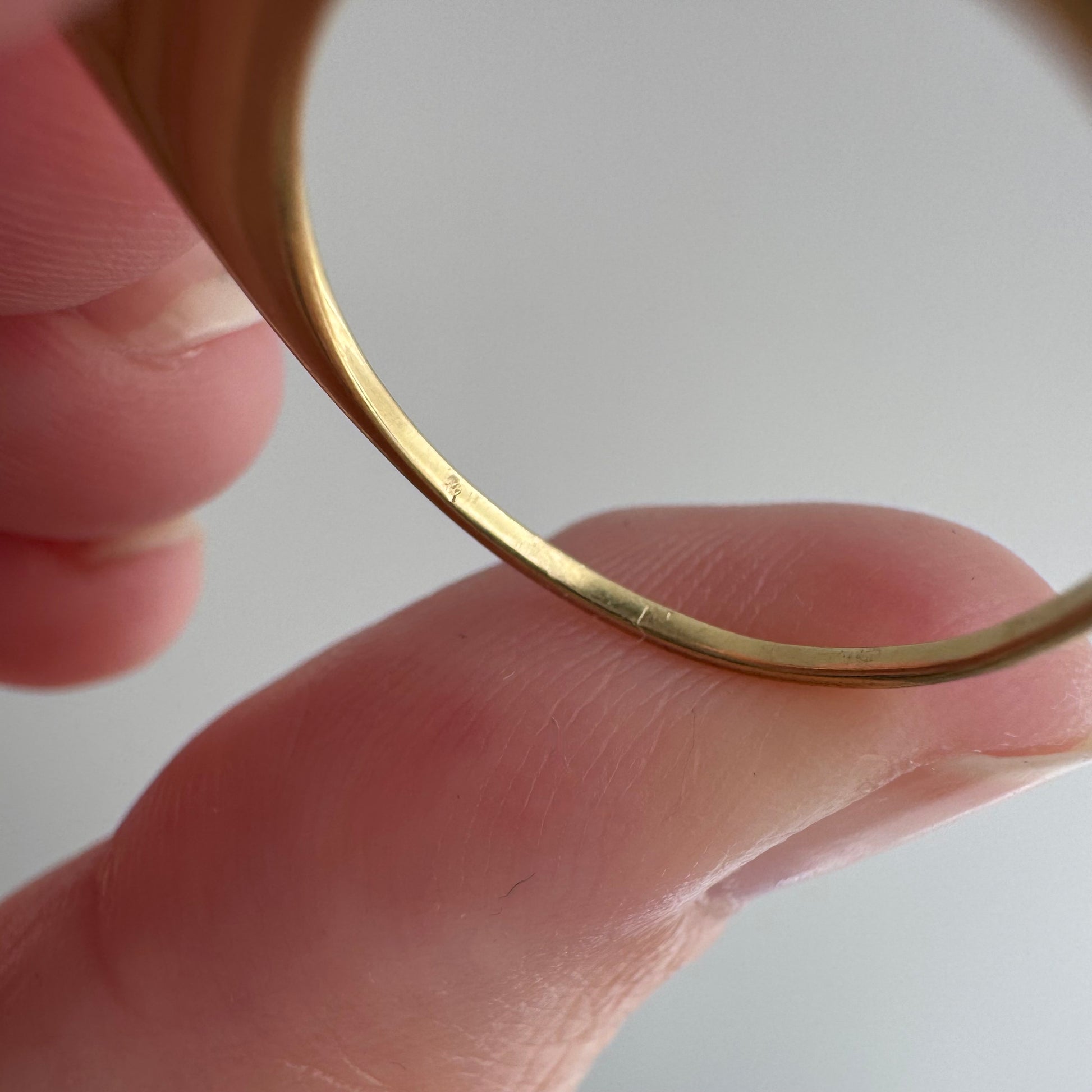-the base of the band doesn't have uniform thickness or width, because it was previously sized, which also removed its 18k mark