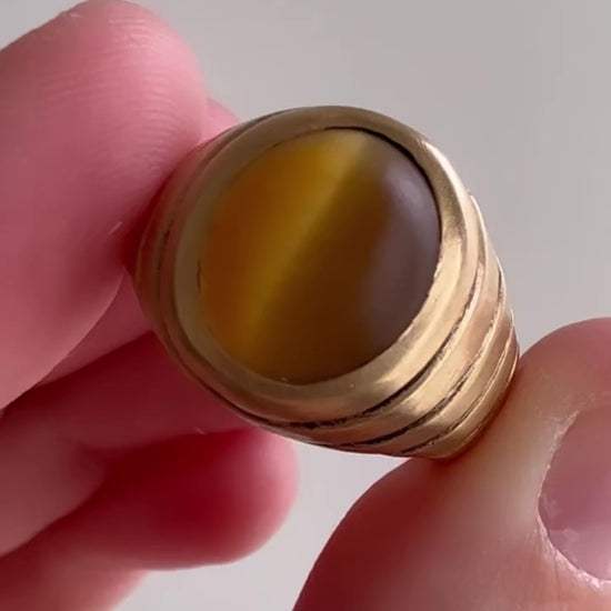 V I N T A G E // shimmery coffee bean / 10k yellow gold and tigers eye signet dome ring / size 7