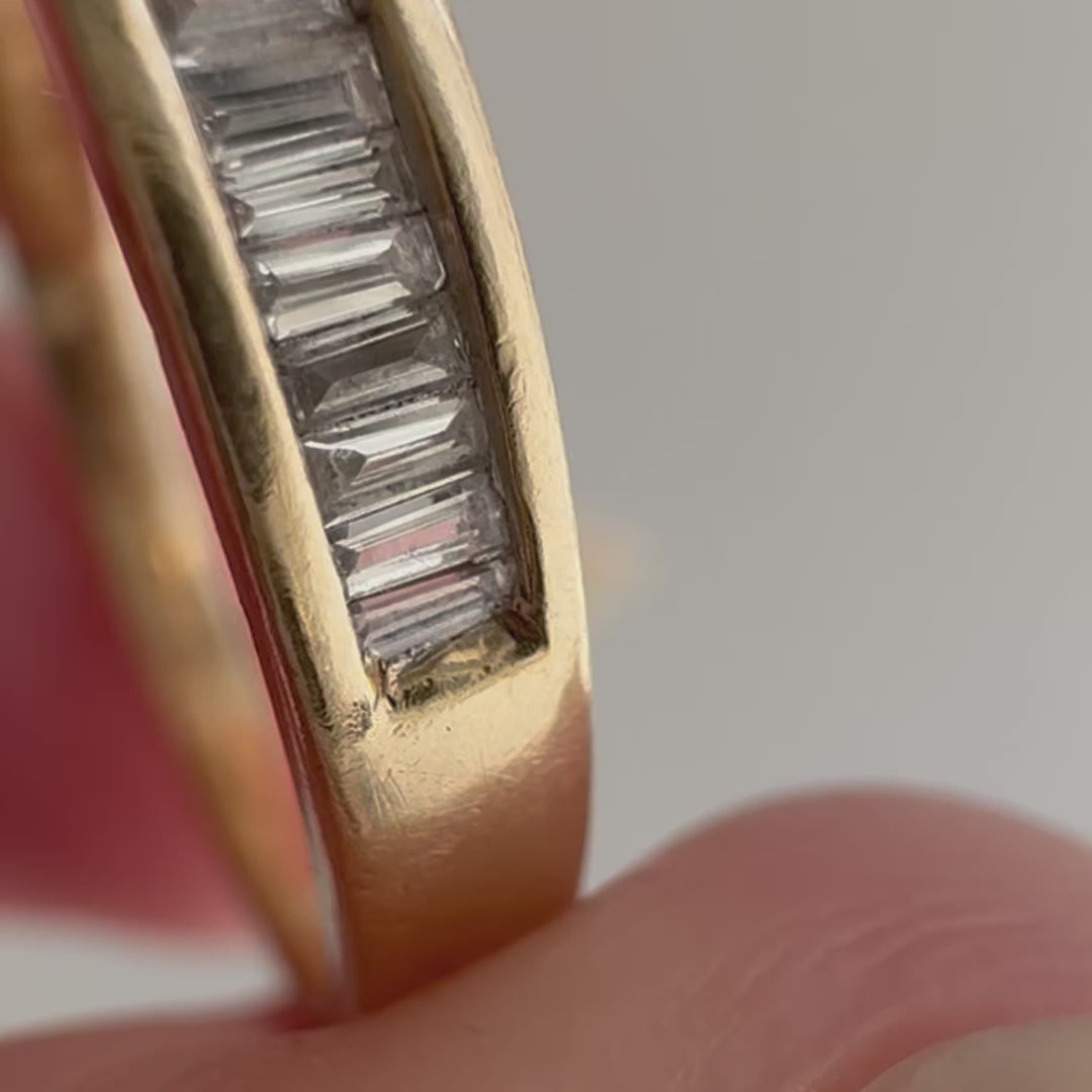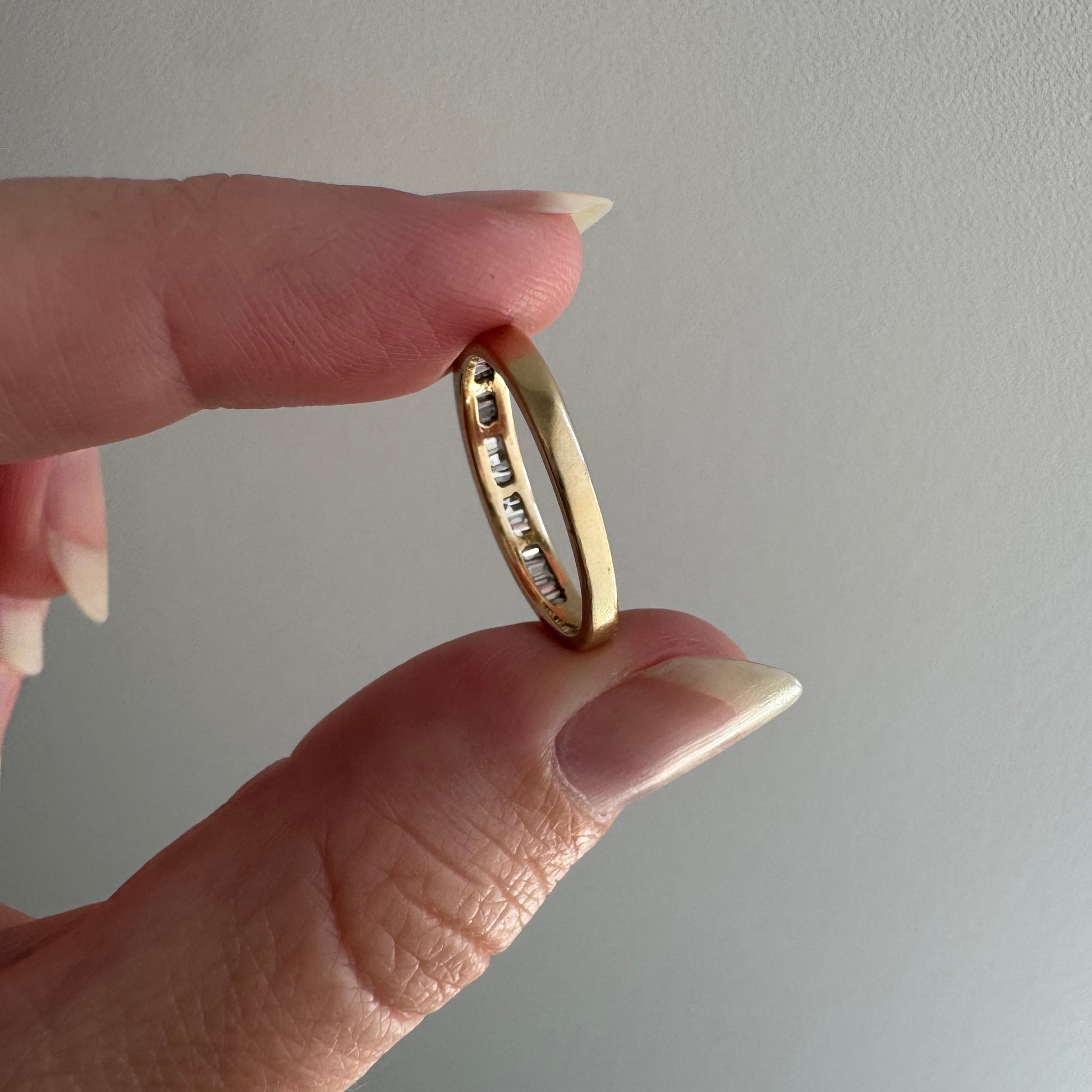 V I N T A G E // sparkle geometry / 14k yellow gold and channel set baguette diamond half eternity band / size 5.75