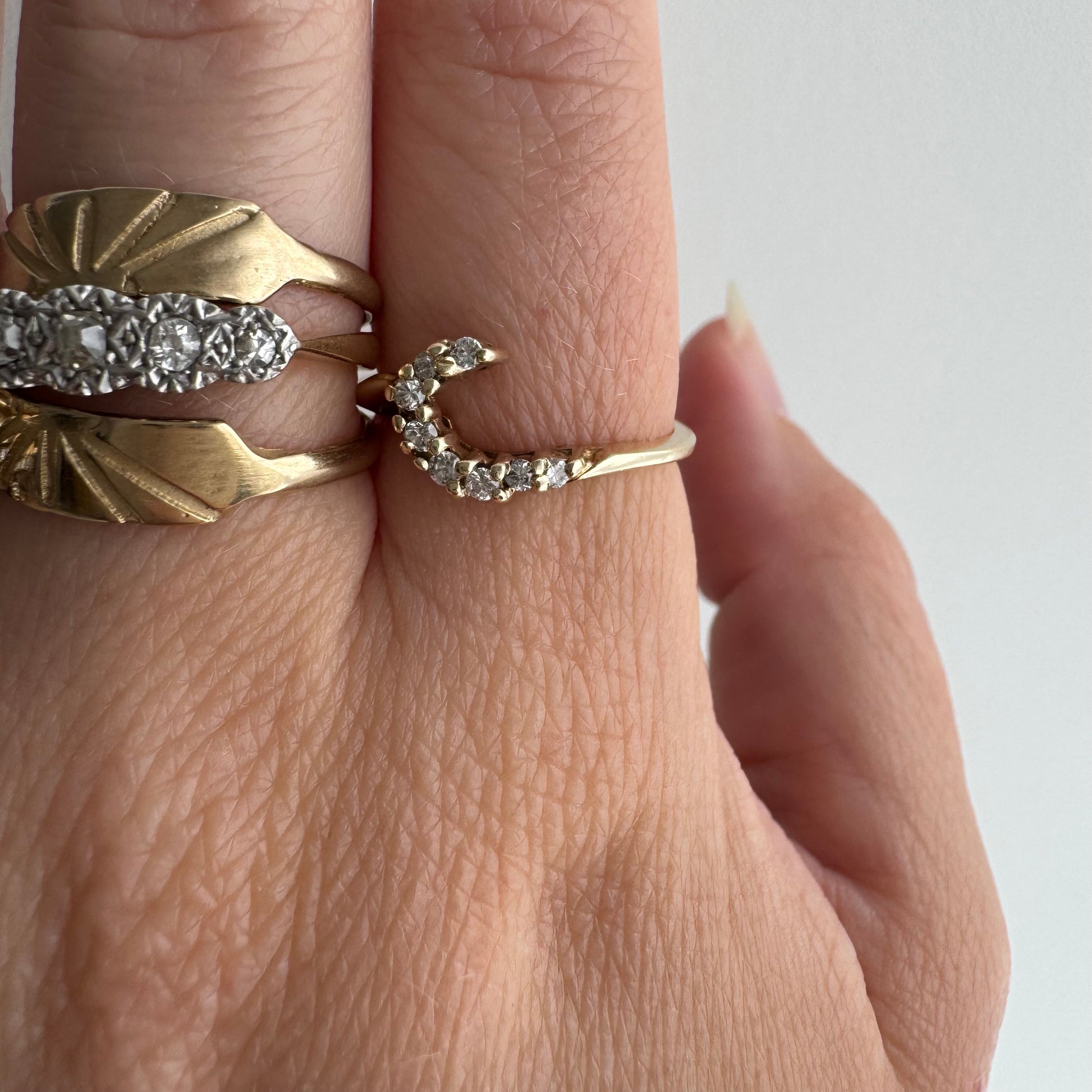 V I N T A G E // sparkle wave / 14k and eight diamond ring guard jacket / size 6.25
